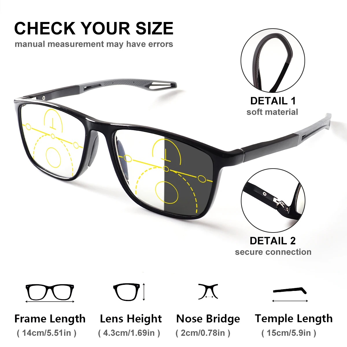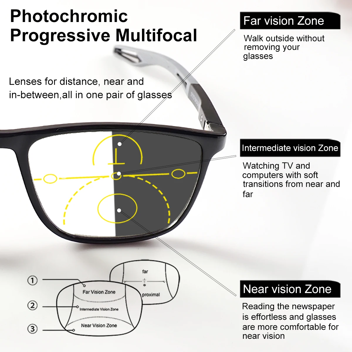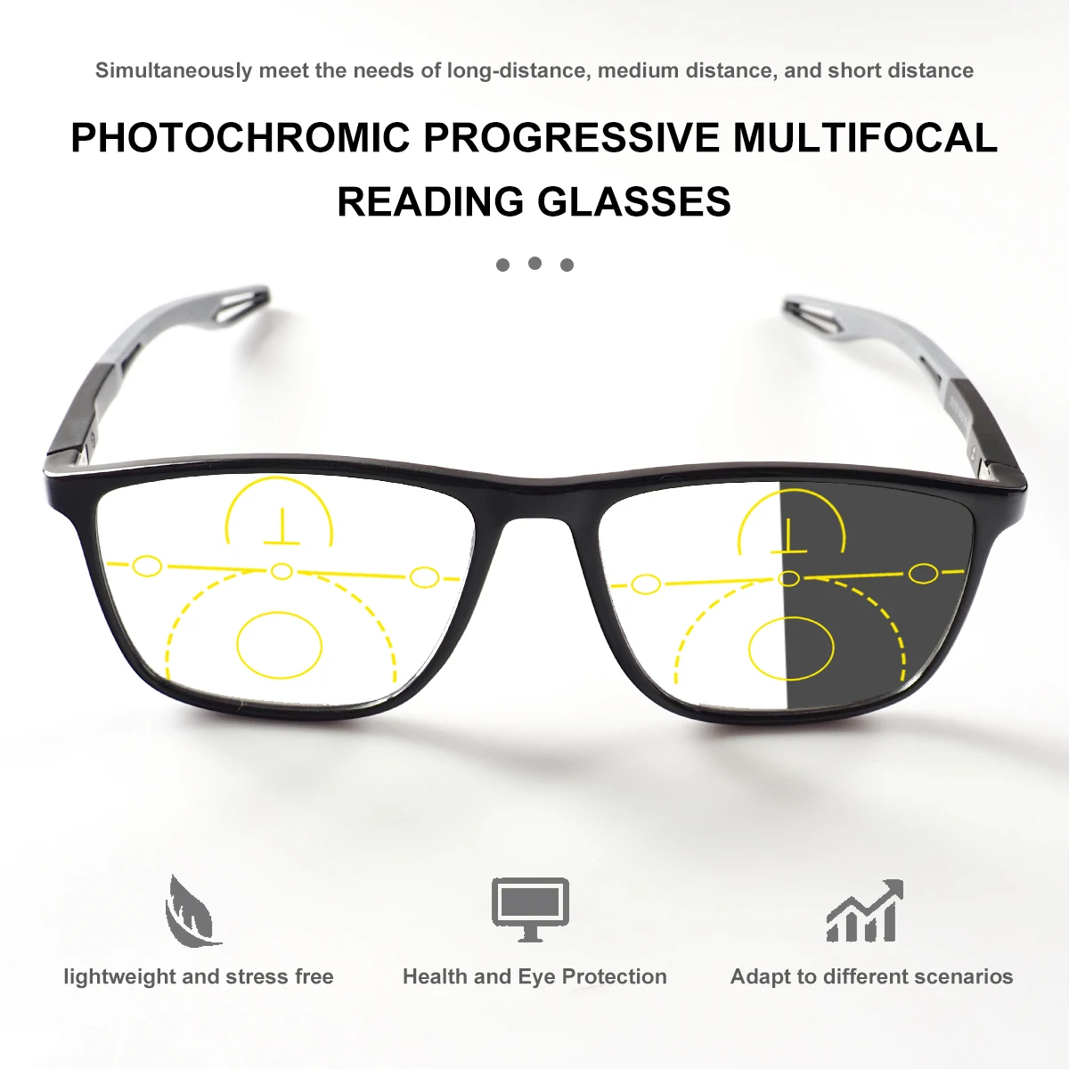 Lunettes de lecture multifocales progressives, photochromiques, anti-lumière bleue, monture robuste Tr90, adaptées aux hommes et aux femmes, +100-+400