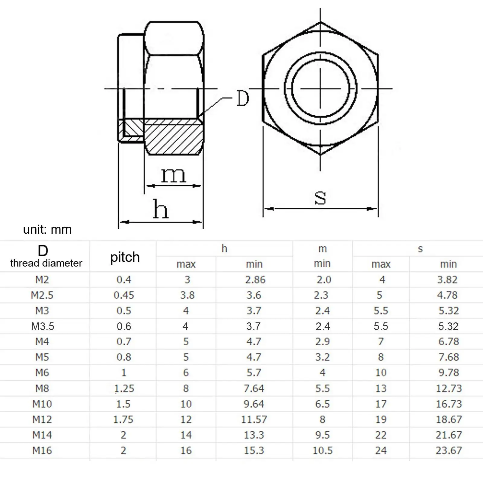 M2 M2.5 M3 M3.5 M4 M5 M6 M8 M10 M12 M14 M16 304 acier inoxydable noir hexagone Nylon insérer écrou de blocage écrou autobloquant