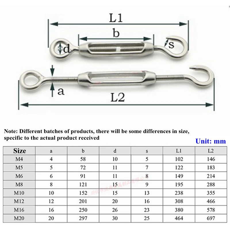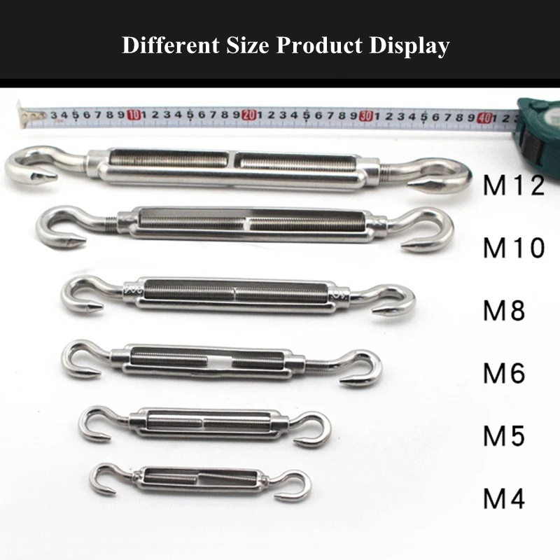 Tendeur à bride en acier inoxydable 304, M5 ~ M24, crochet de boulon, dispositif de tension de câble métallique, filet d'ombrage, Installation de bâche, outils de bricolage