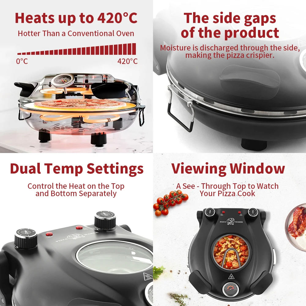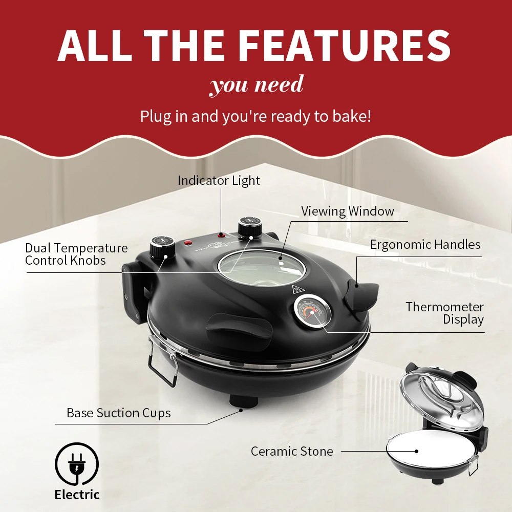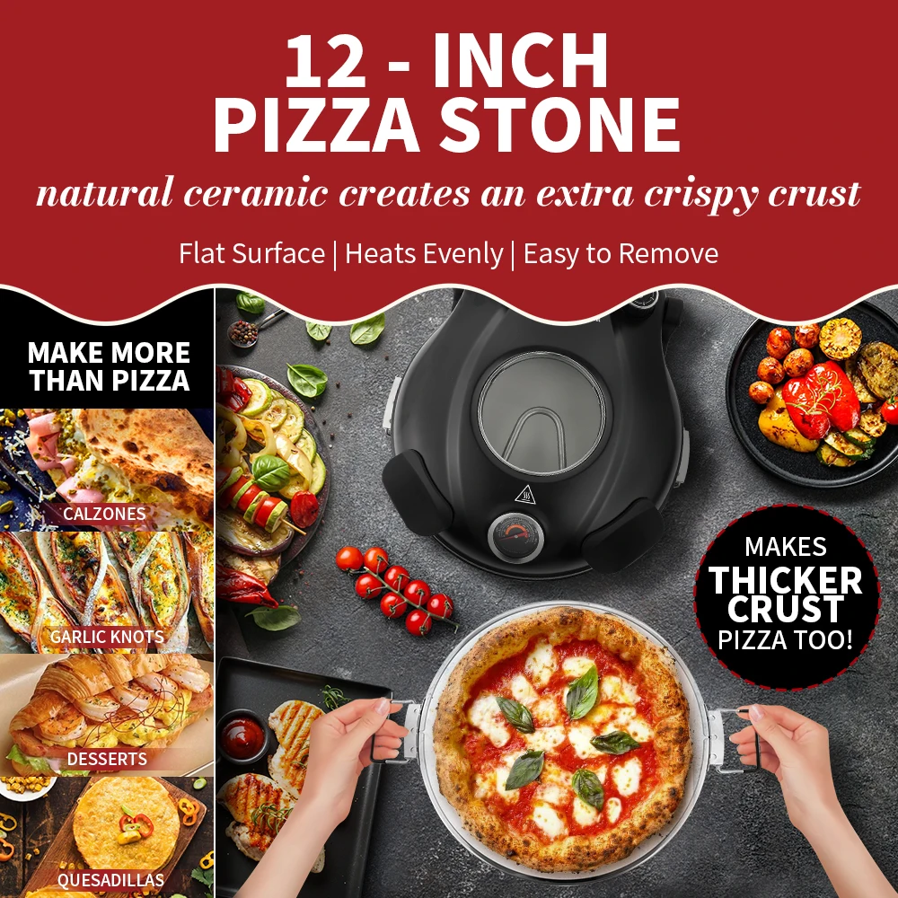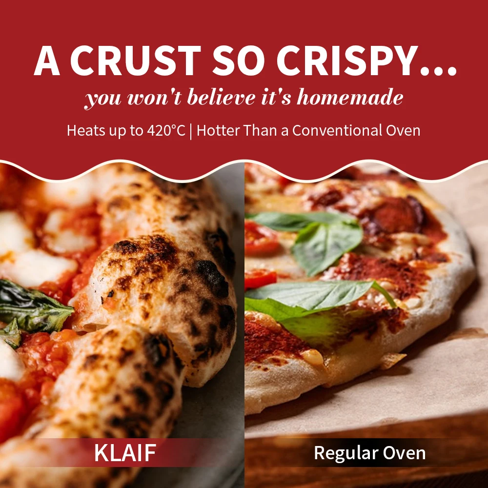 Machine à pizza électrique Klaif, 420 ℃ 1200 Watts, 5 niveaux de température séparés, plaque en pierre résistante aux flammes 1200W 32cm