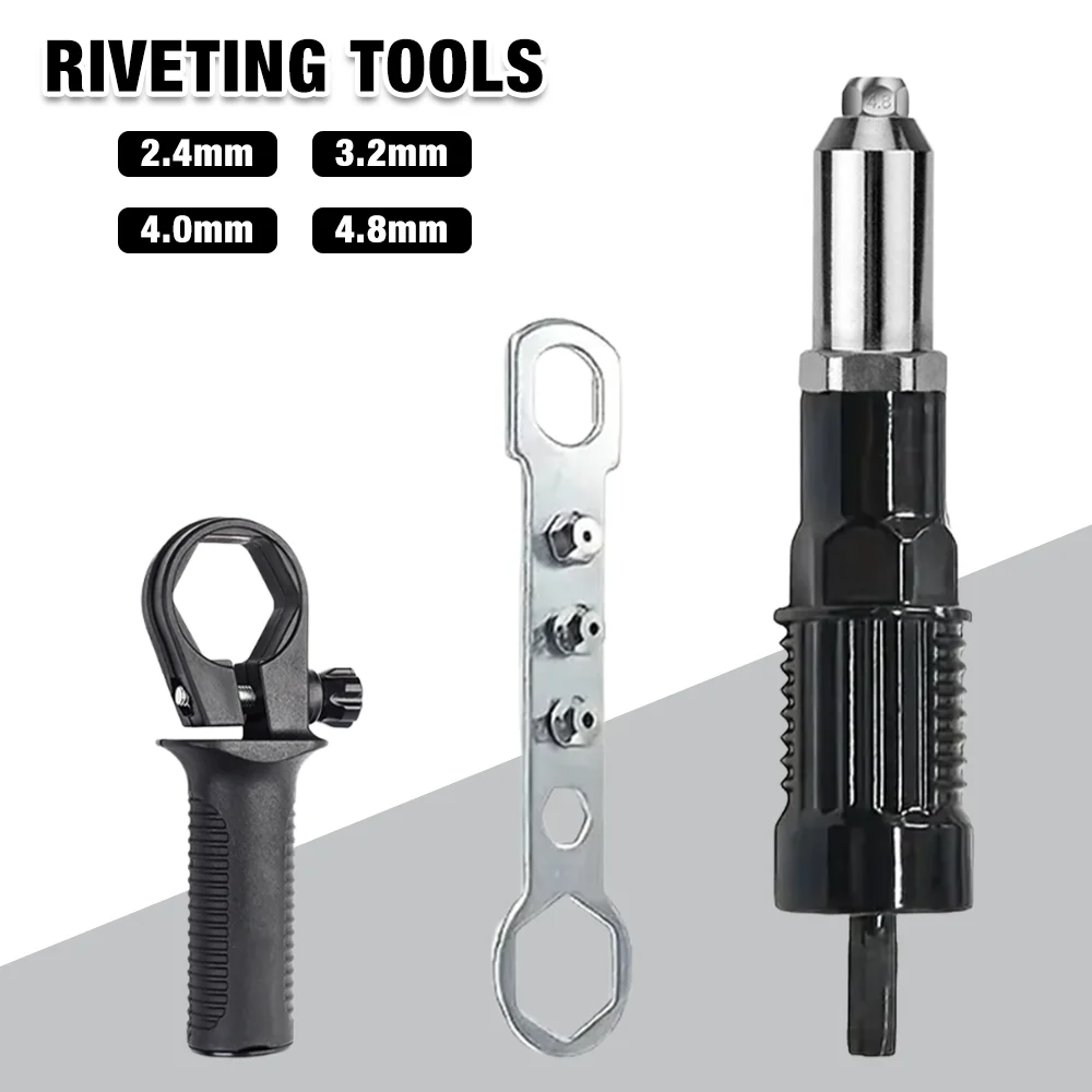 Pistolet à riveter électrique 2,4mm-3.2mm-4.0mm-4.8mm, écrou à riveter, adaptateur de foret, outil de rivetage sans fil, outil de rivetage de traction d'écrou d'insertion