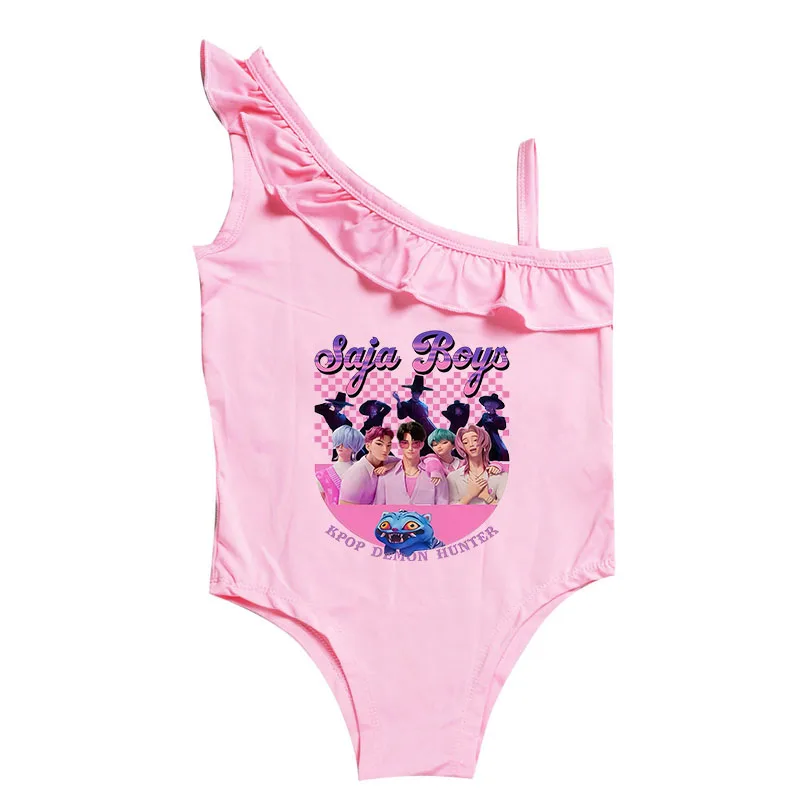 Maillot de bain série Kpop Demon Hunter, nouveau maillot de bain d'été pour filles avec bretelles, vêtements de plage décoratifs, pour les âges de 2 à 10 ans