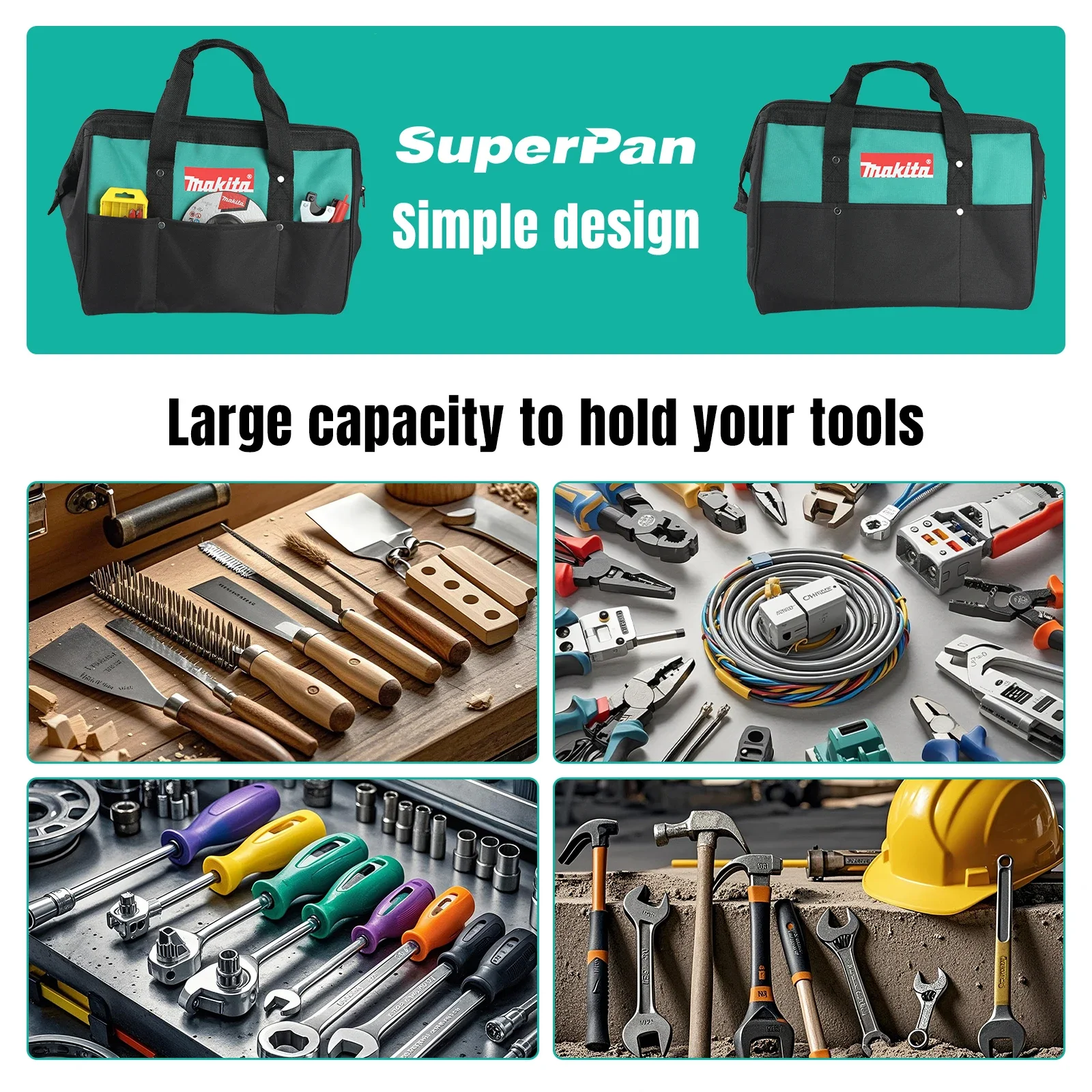Makita 14.57 pouces sac à outils à main Double couche Oxford tissu fil d'acier autour de la bouche électricien-sac étanche Anti-chute sac de rangement