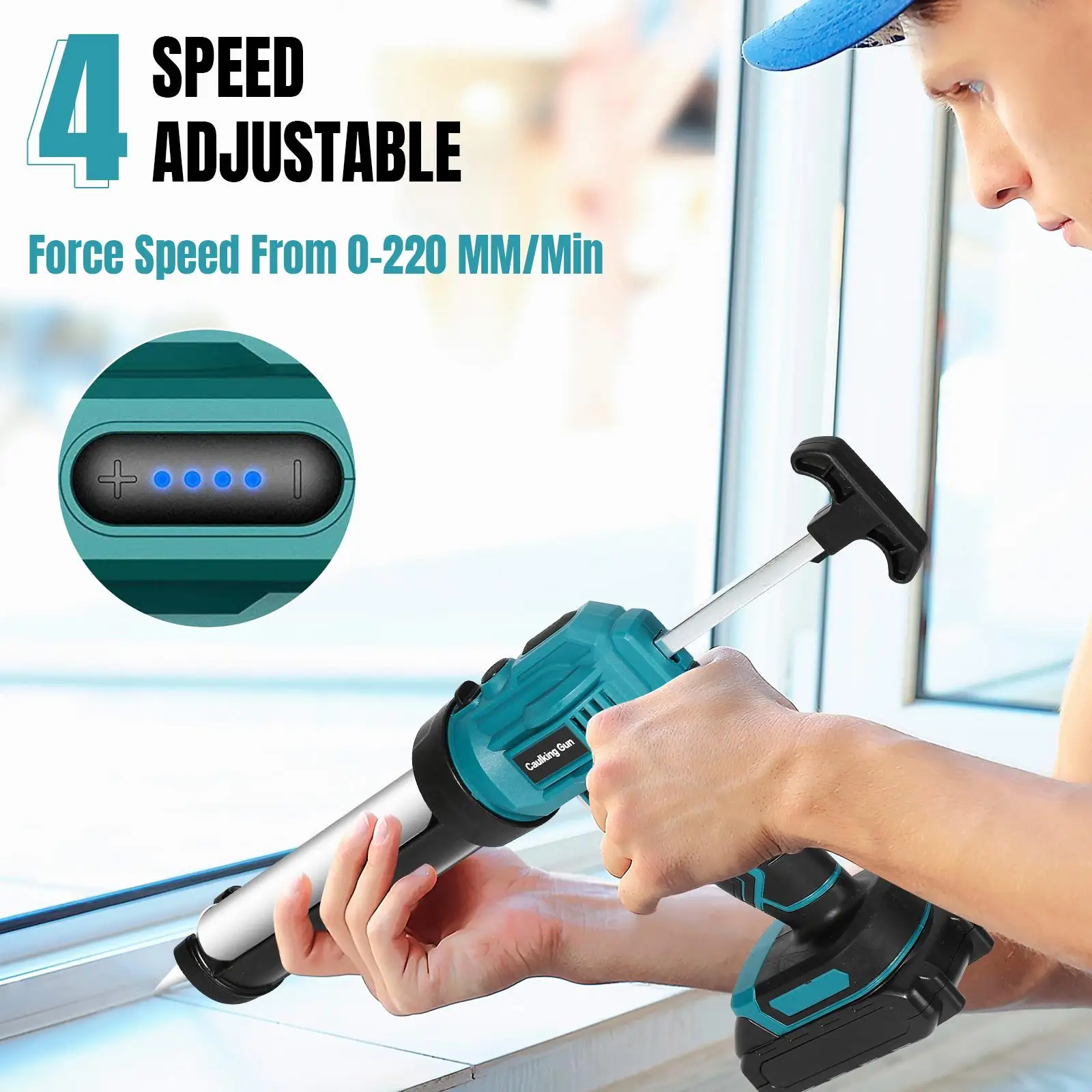 3.Excellente autonomie : Notre pistolet à joint électrique rechargeable est équipé d'une batterie lithium-ion de 2,0 Ah, sans risque de fuite, permettant d'utiliser durablement 100 tubes de joint.