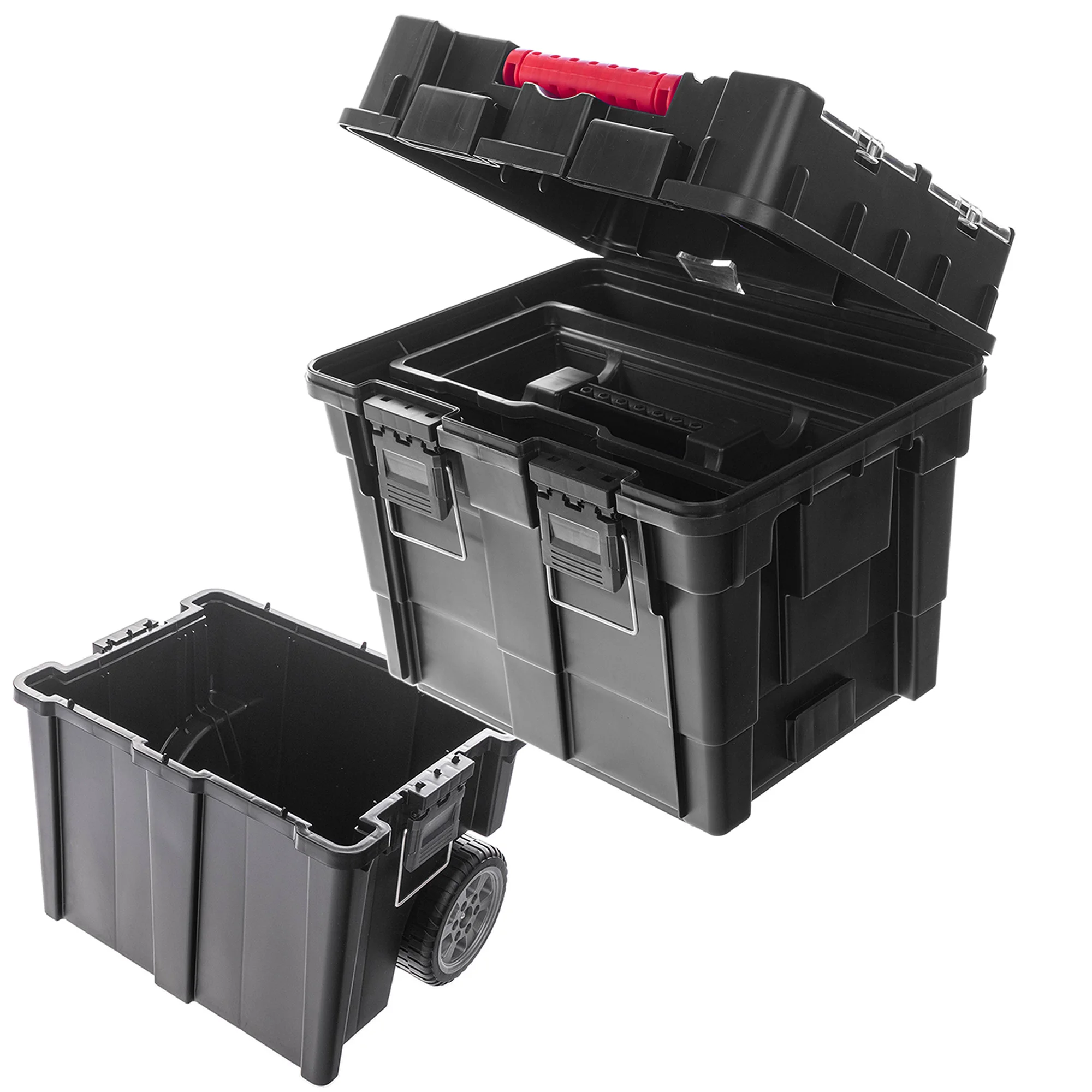 The KADAX brand tool box is the perfect solution for anyone who needs a functional and durable tool storage space. The box on wheels is extremely mobile, making it a great choice for workshops and for construction. Solid polyamide fasteners guarantee that the contents of the box will be securely stored. Other models, such as a box with an aluminum handle and 2 organizers in the lid, are distinguished by their durability and thoughtful design. The dimensions of this model are 45x25x24 cm, and its weight is 1.9 kg, which makes it light and handy.