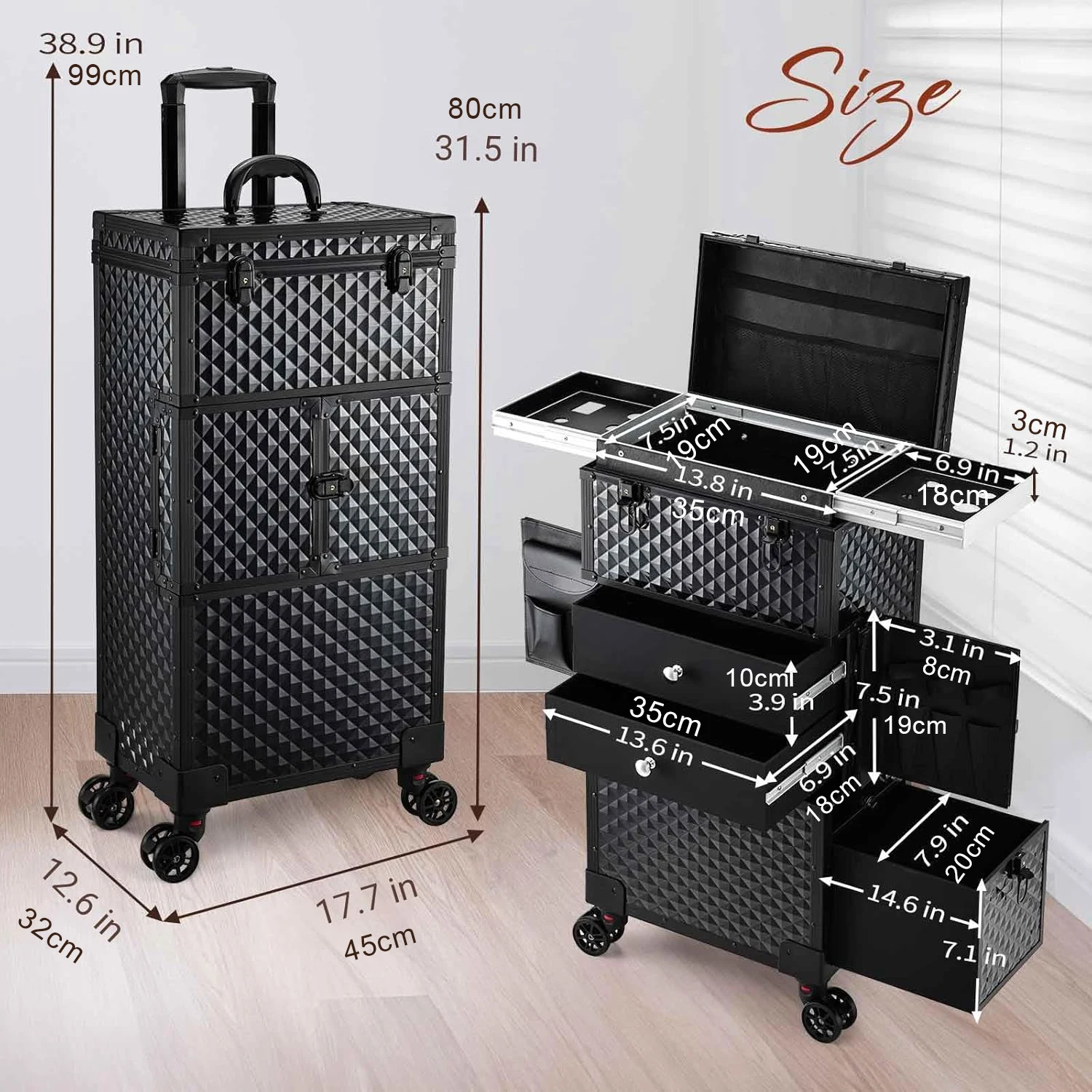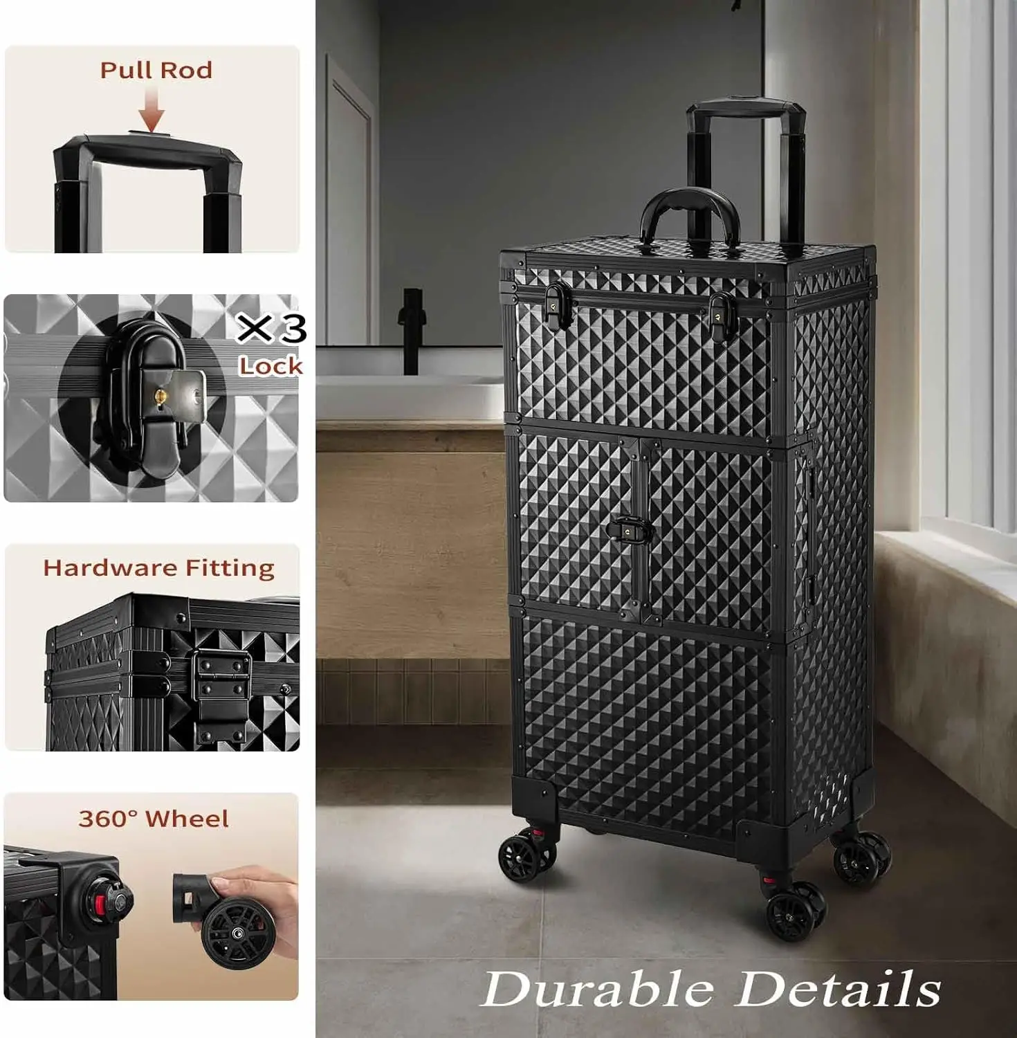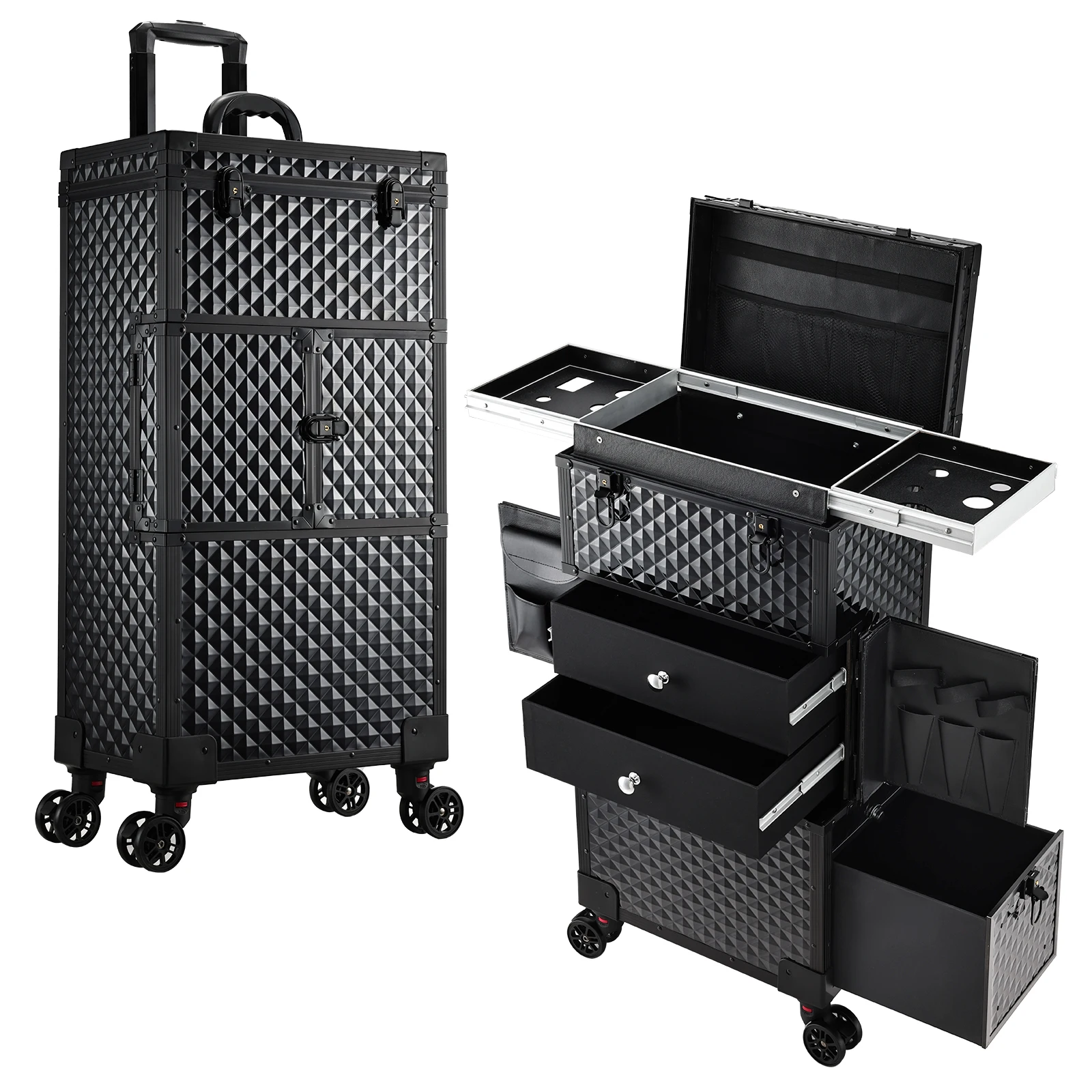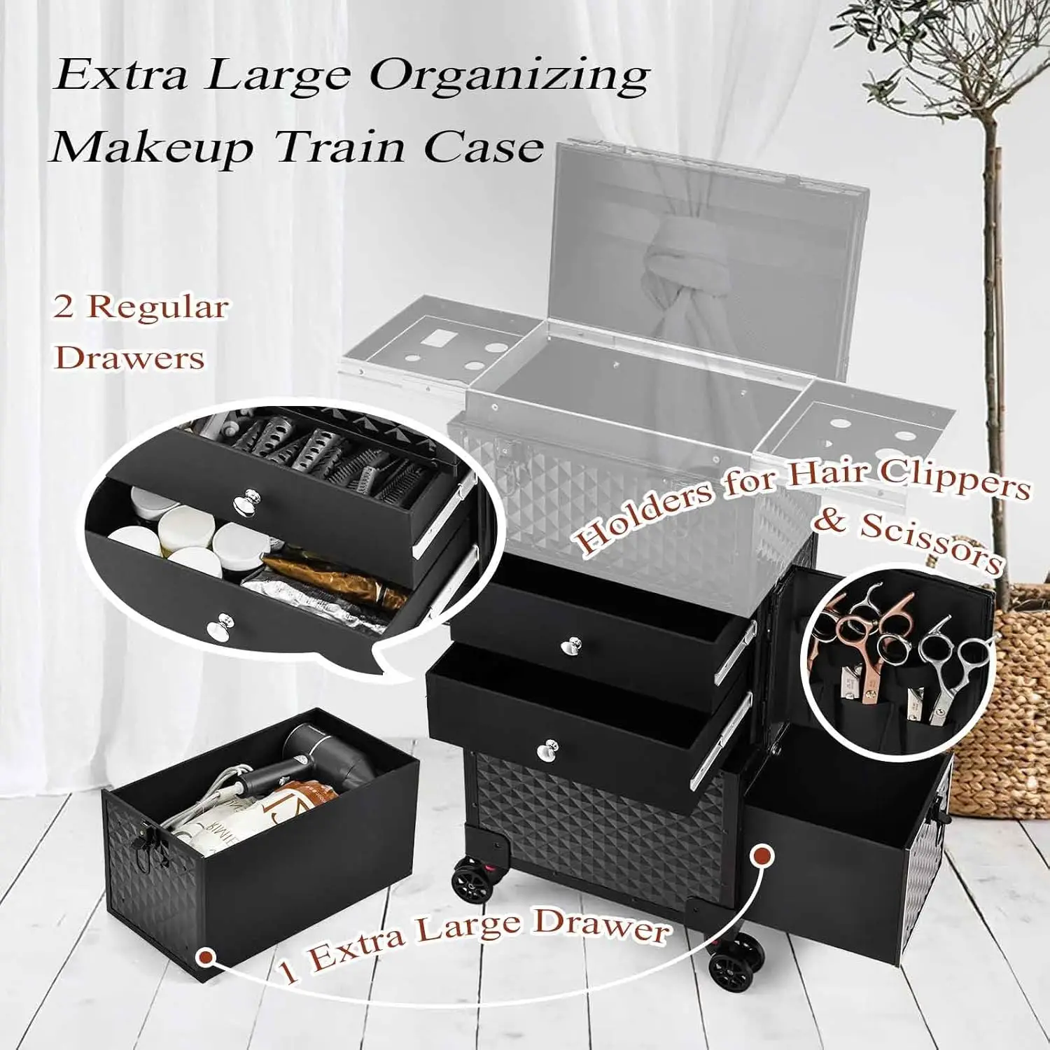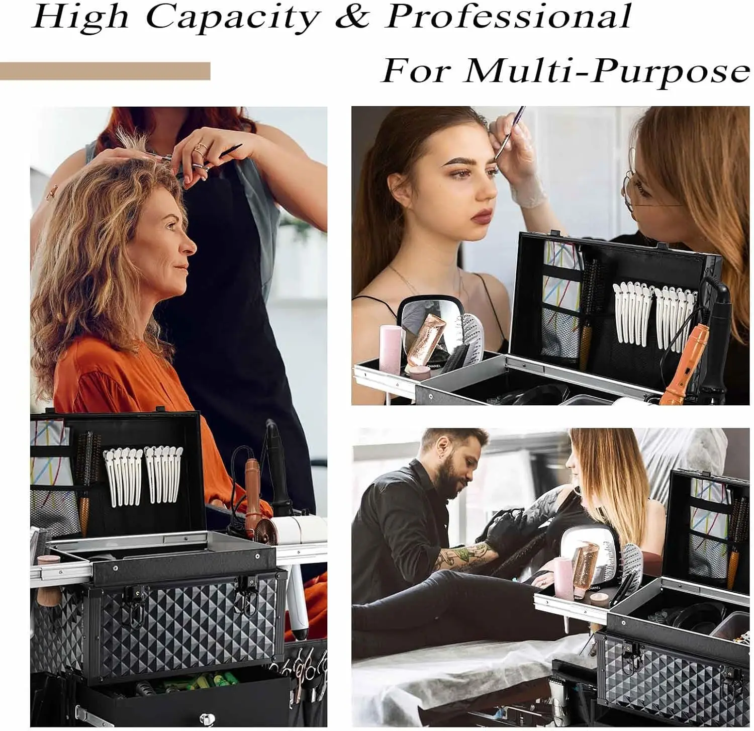 Mallette de maquillage roulante, chariot de cosmétologie professionnel, verrouillage sur roulettes pour barbier et artistes de maquillage avec support pour sèche-cheveux