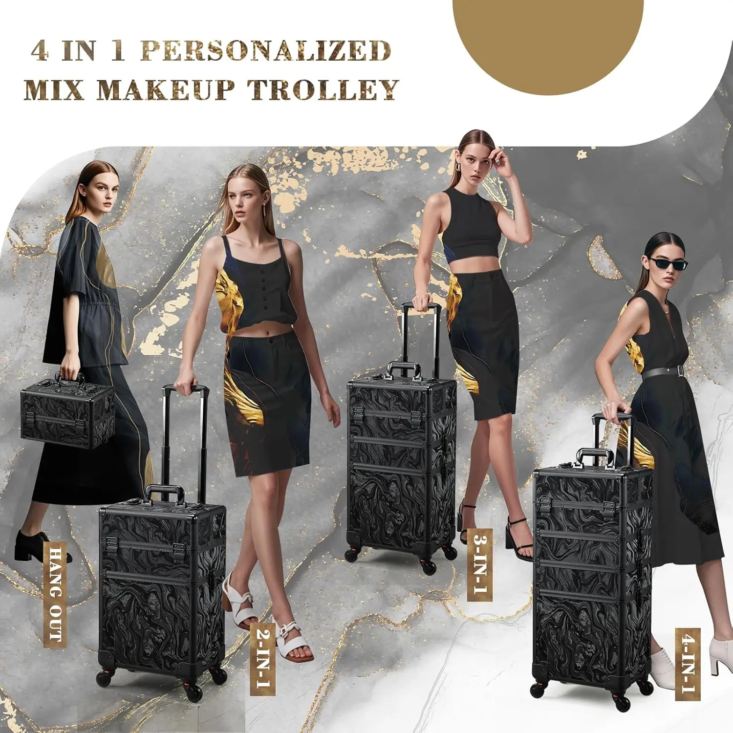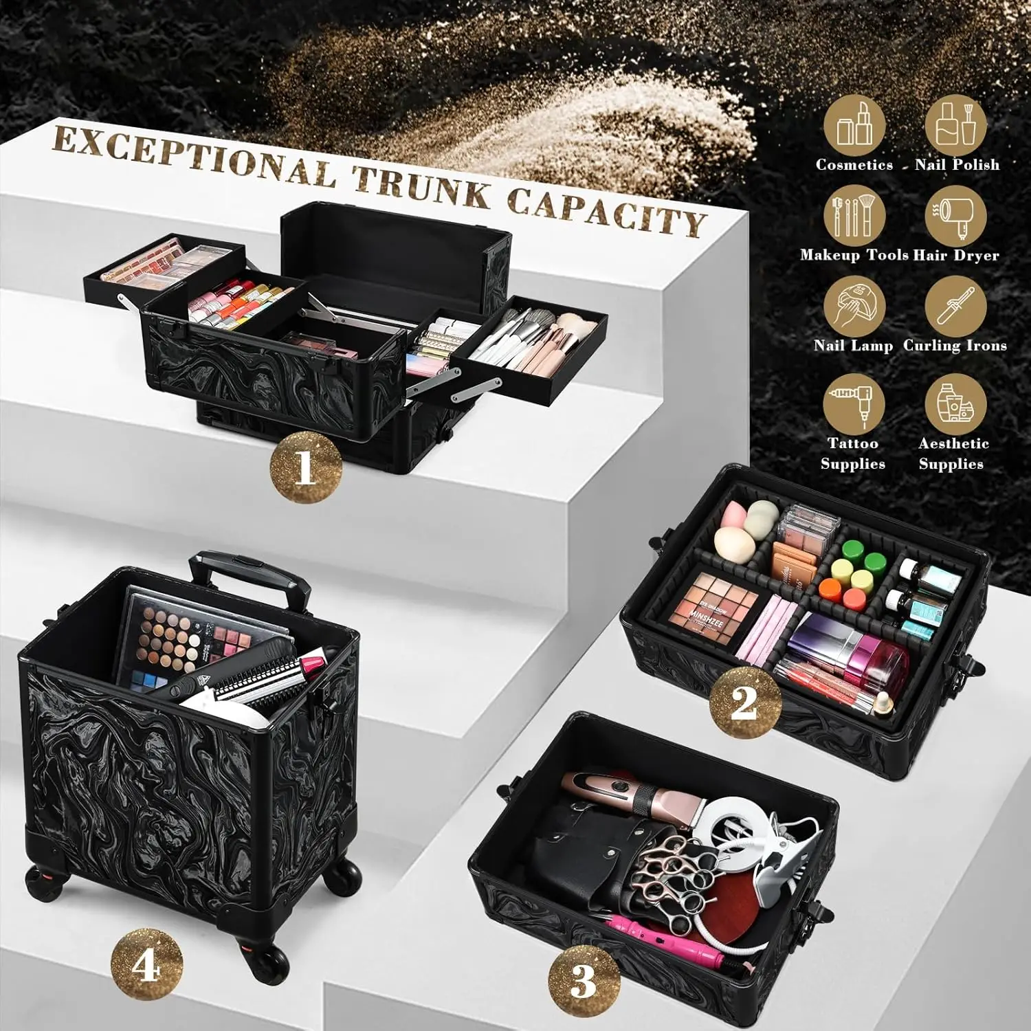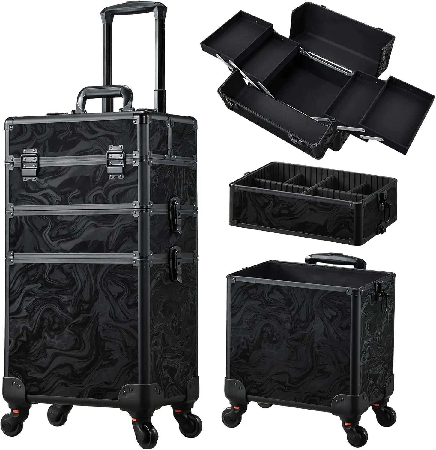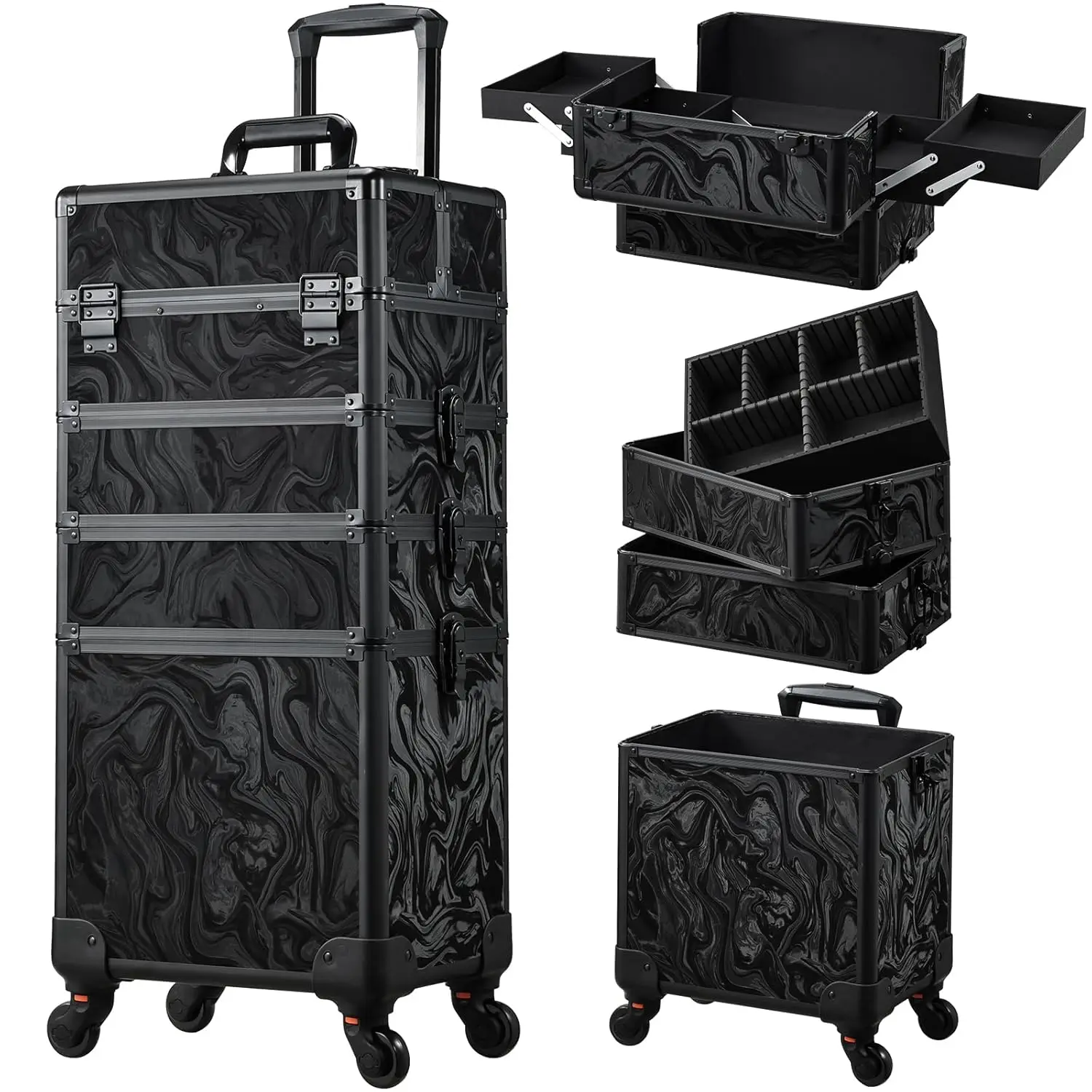 Mallette de voyage de maquillage roulante, étui de cosmétologie sur roulettes, trousse de maquillage 4 en 1, boîte à cosmétiques Extra Large avec clé, coffre de chariot de maquillage