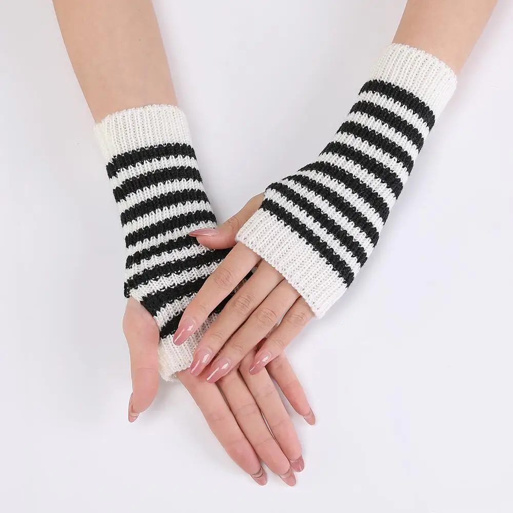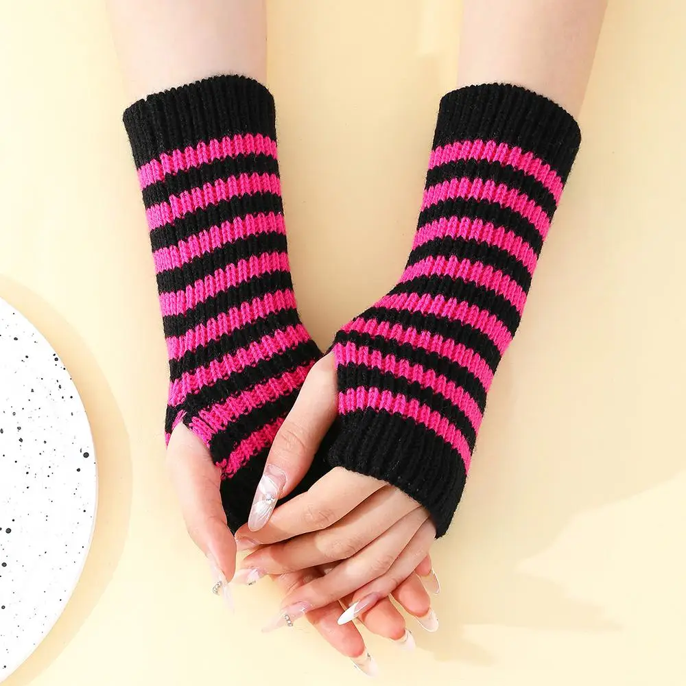 Manchons de bras tricotés sans doigts pour femmes, Style gothique rayé, chauffe-bras longs d'hiver pour filles, gants de poignet à la mode Harajuku Y2K