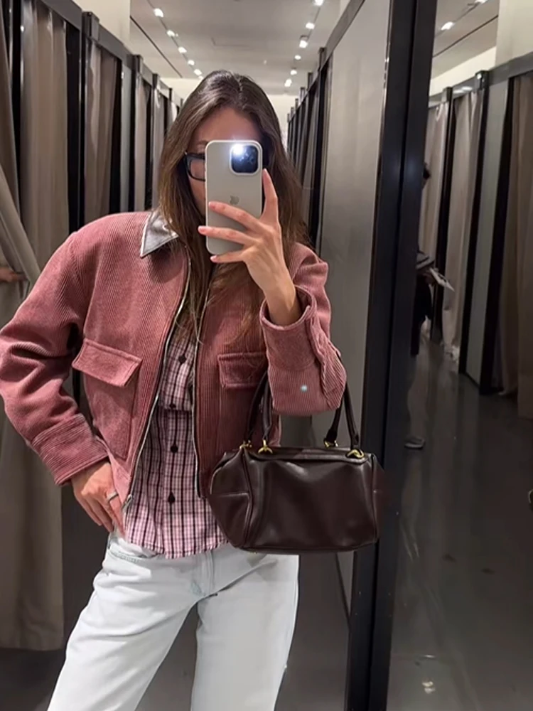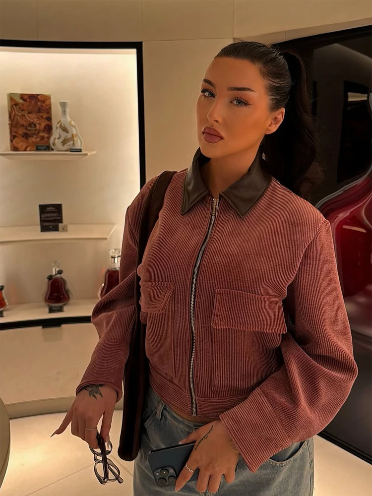 Manteau en coton à col montant pour femme, Chic, manches longues, fermeture éclair, poche, ample, court, hiver, pour les déplacements quotidiens, manteaux de rue