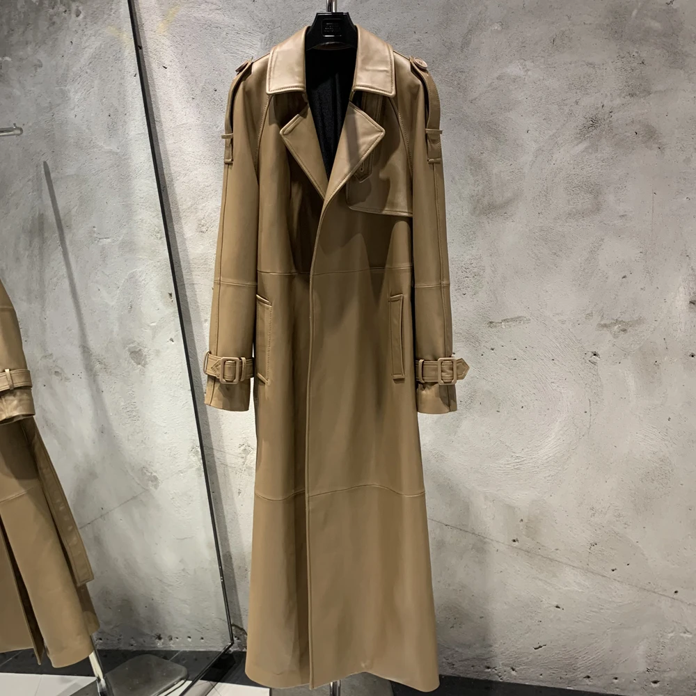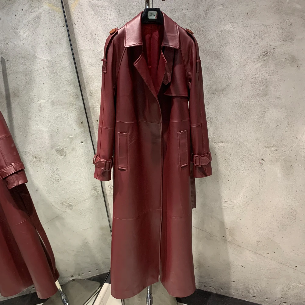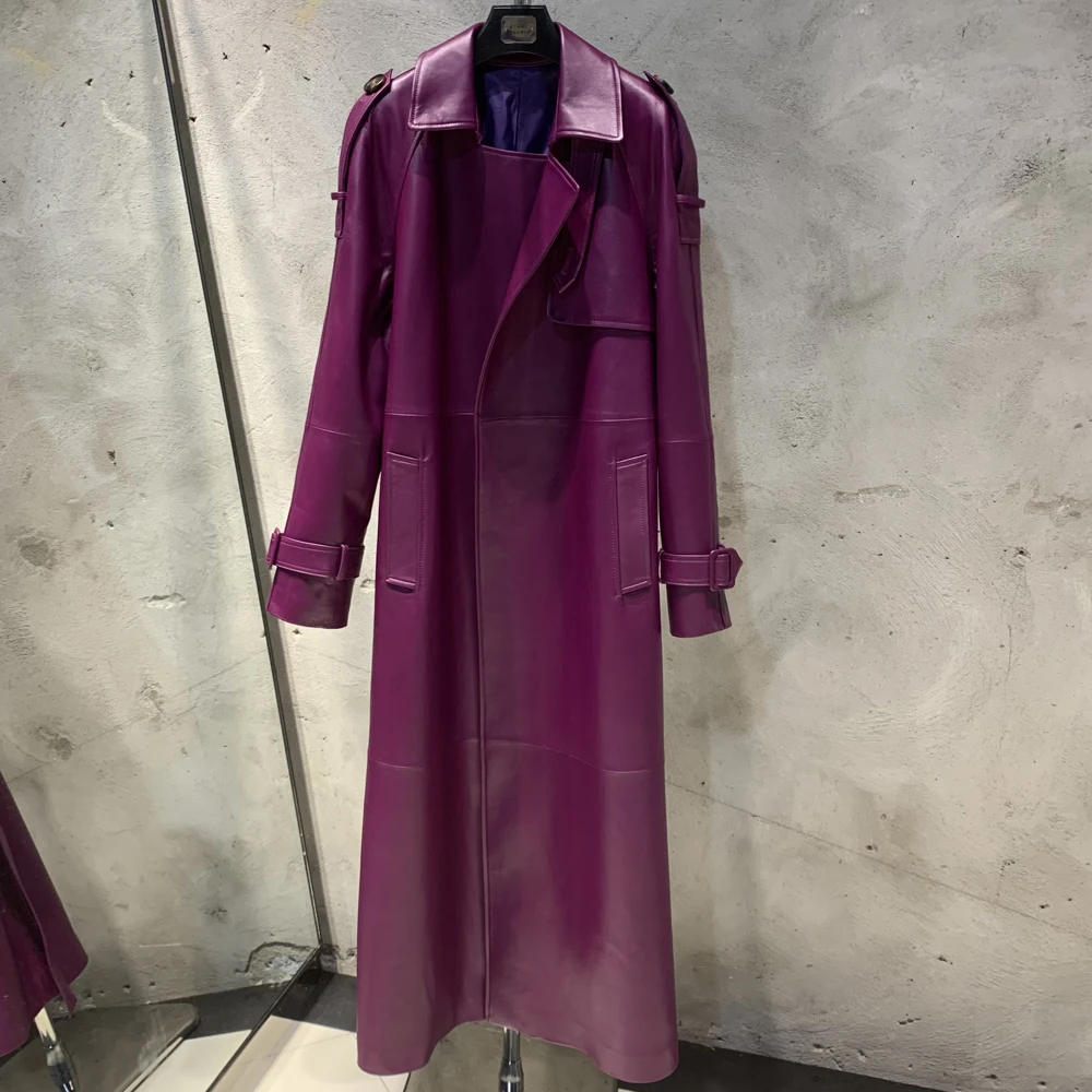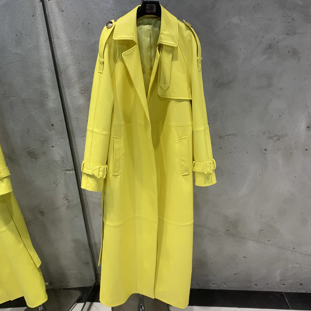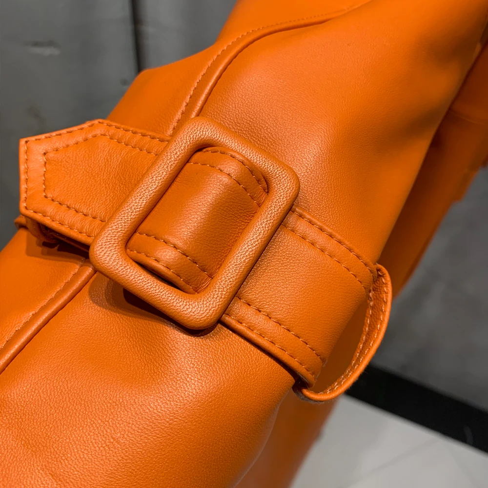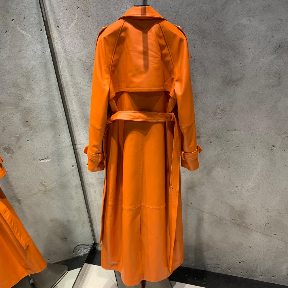 Manteau long en cuir de mouton véritable pour dames, coupe-vent orange, 21018