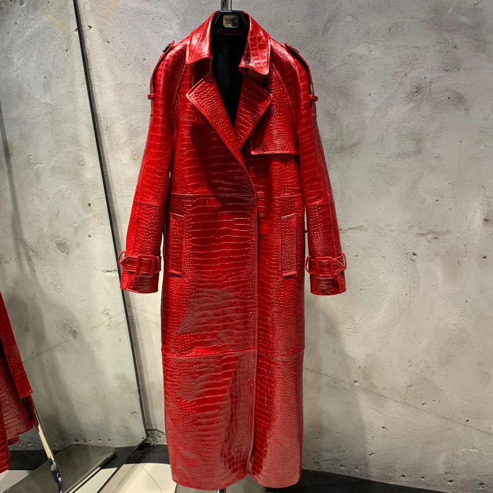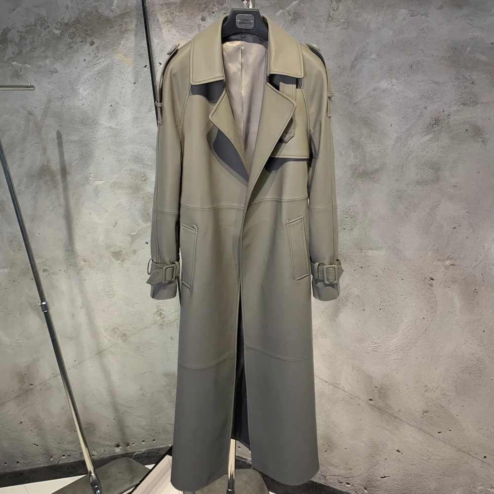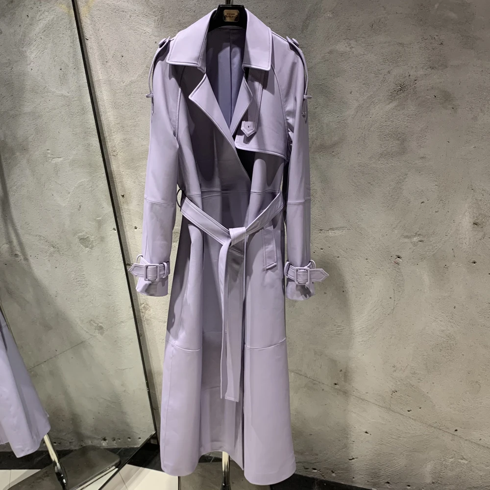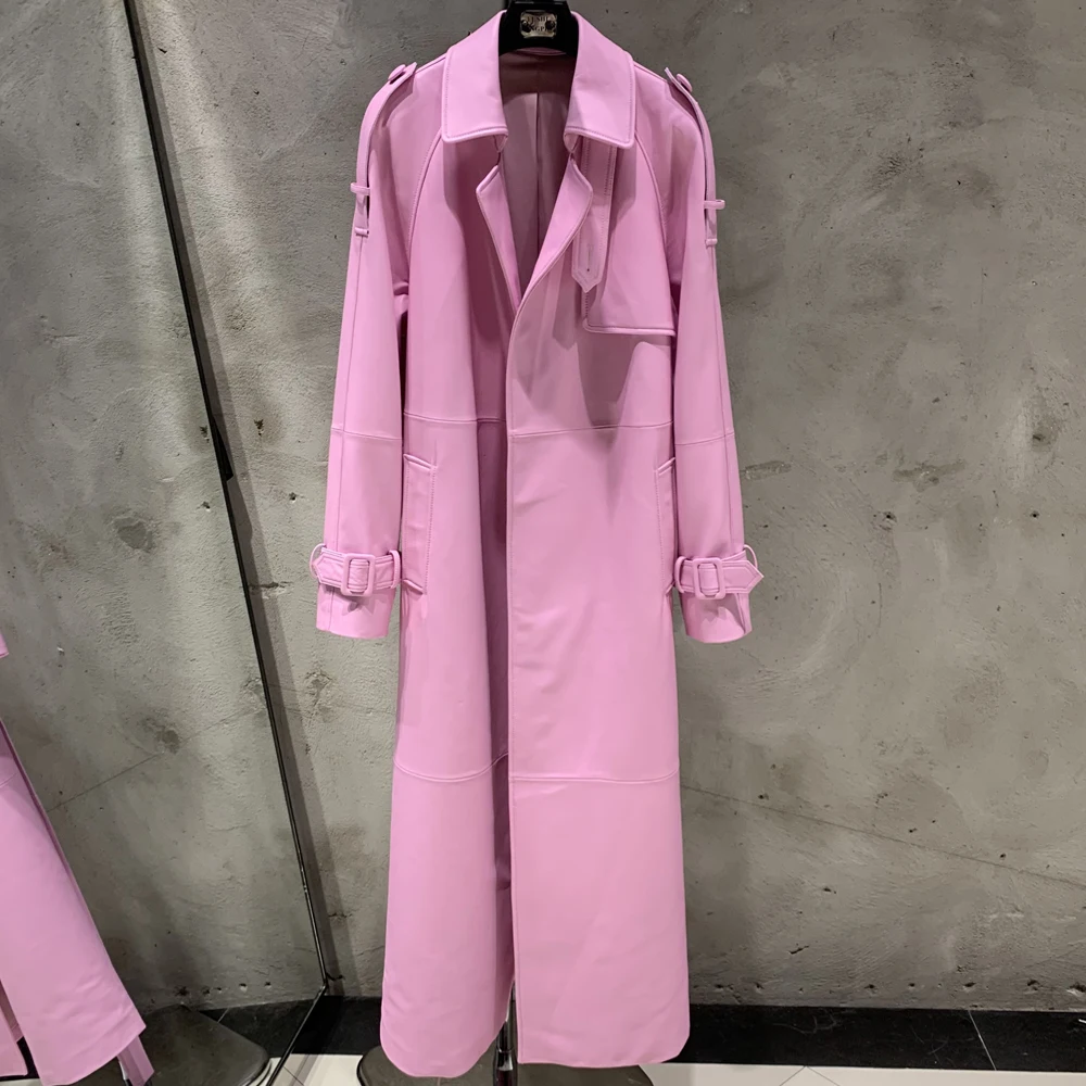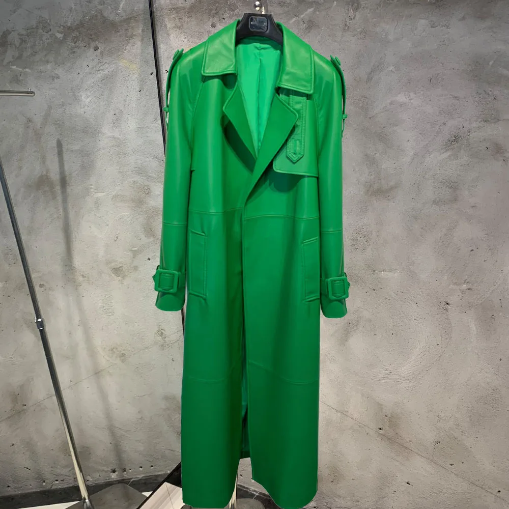 Manteau long en cuir de mouton véritable pour dames, coupe-vent orange, 21018
