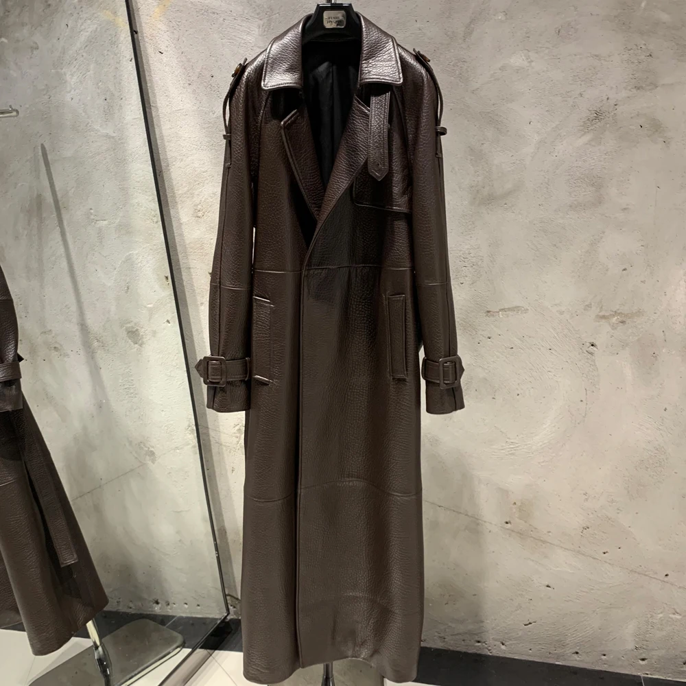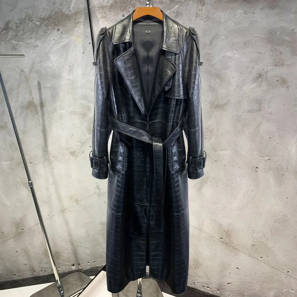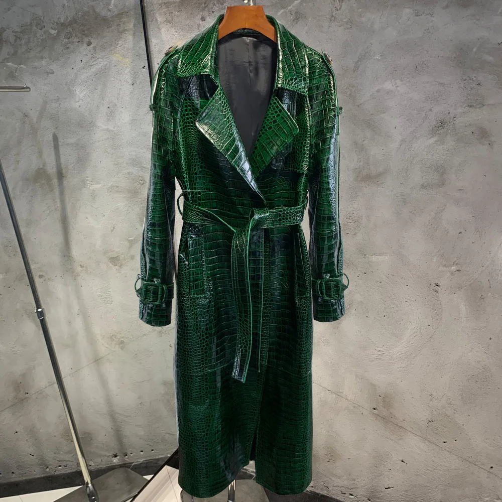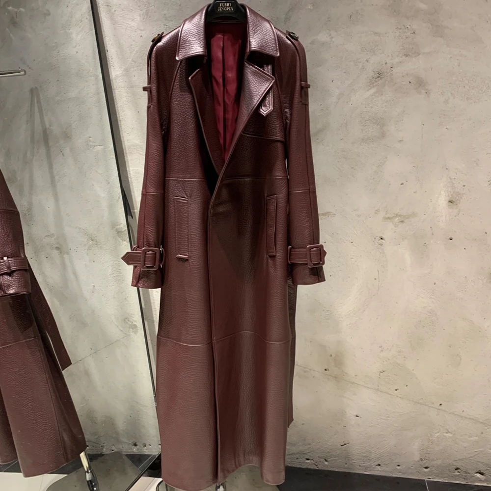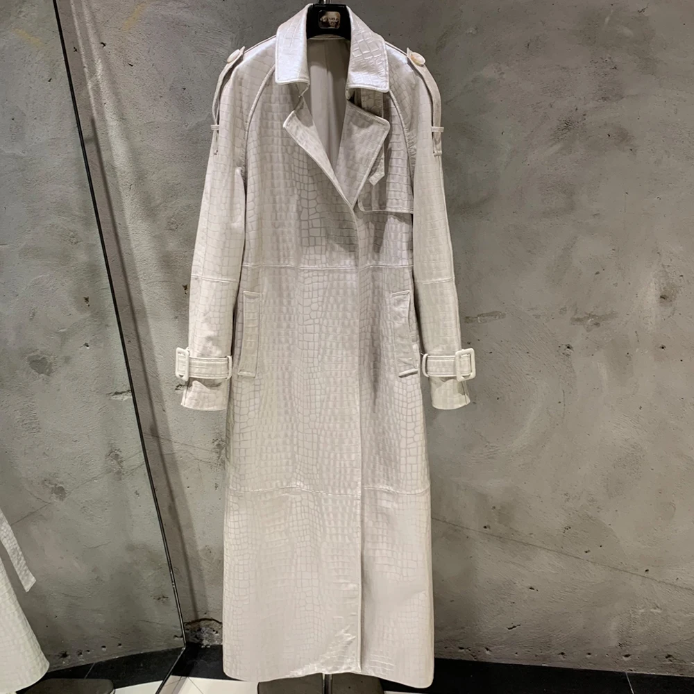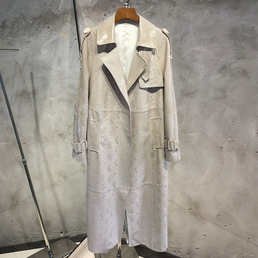 Manteau long en cuir de mouton véritable pour dames, coupe-vent orange, 21018