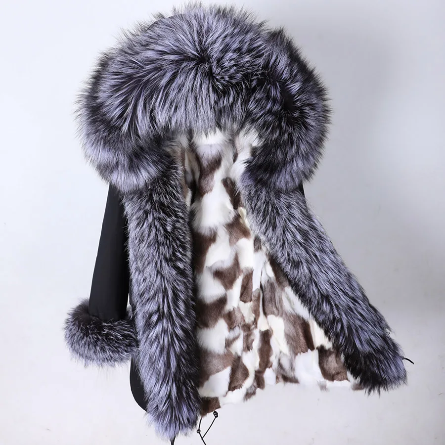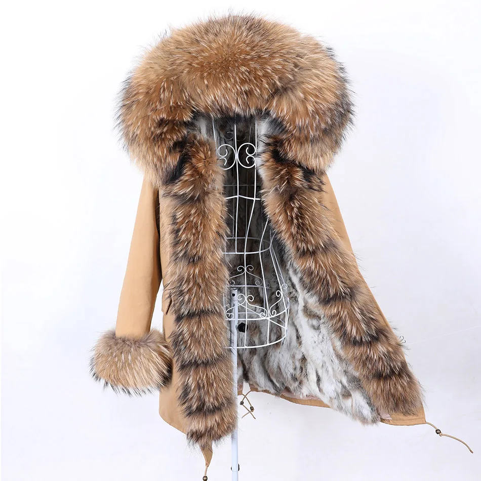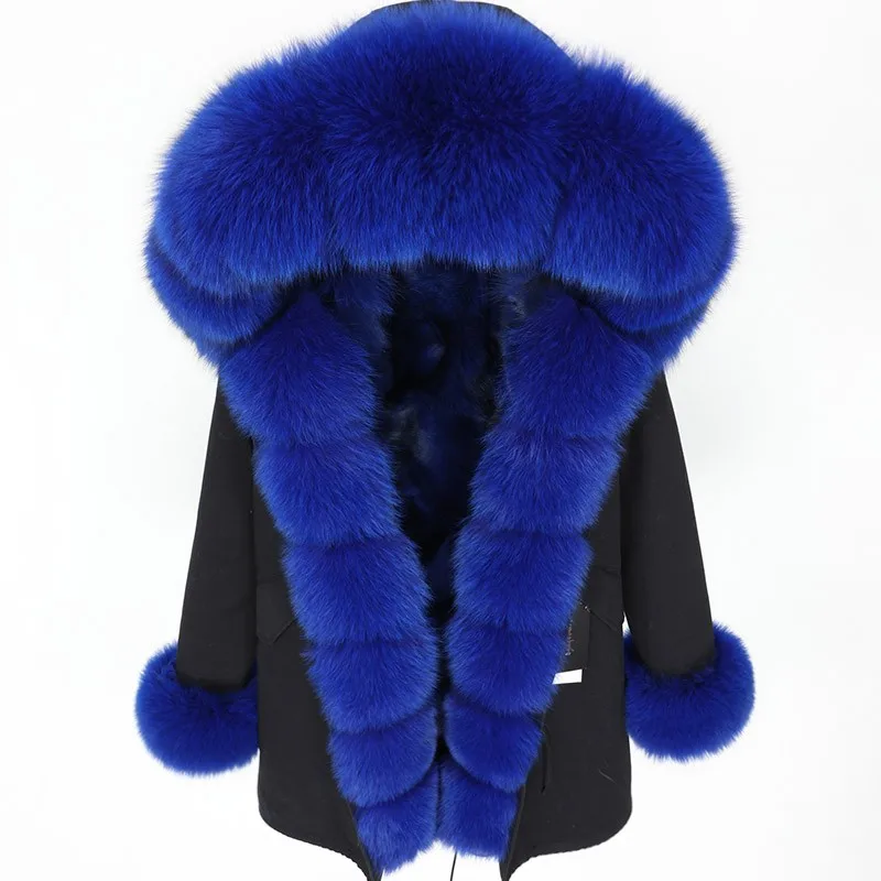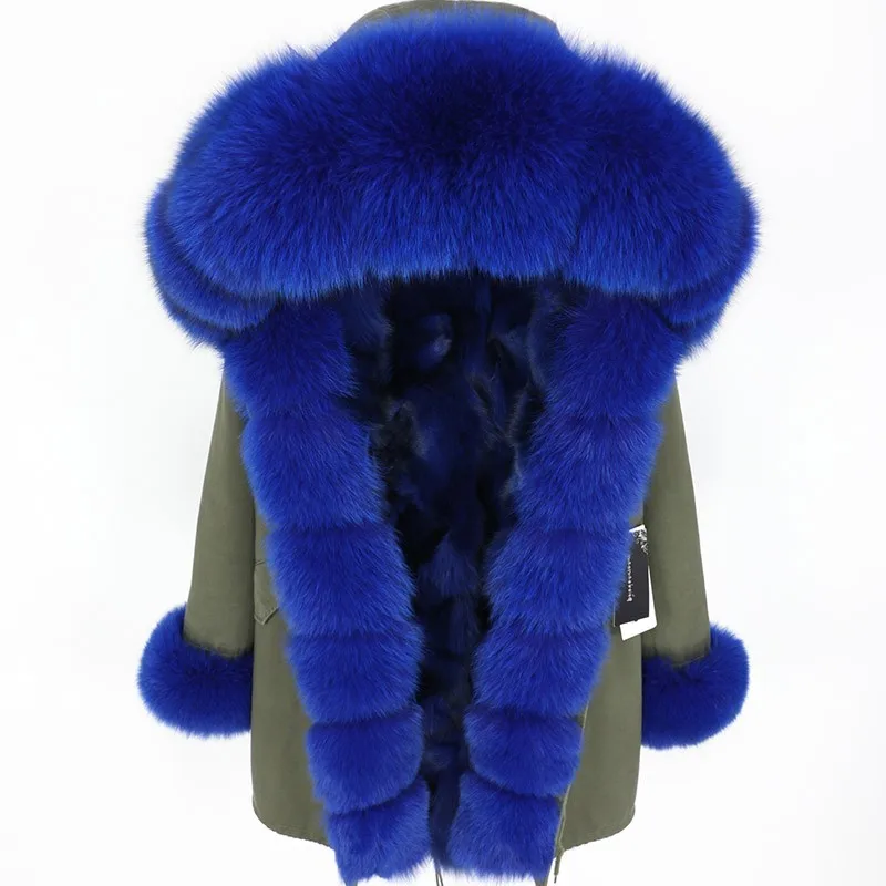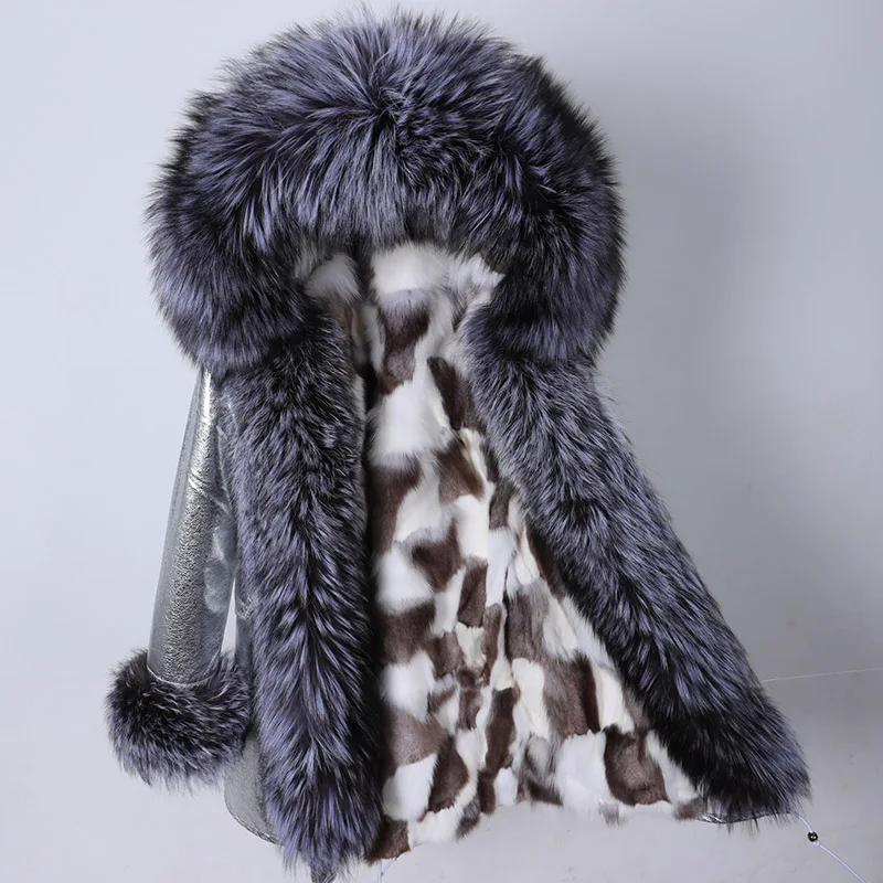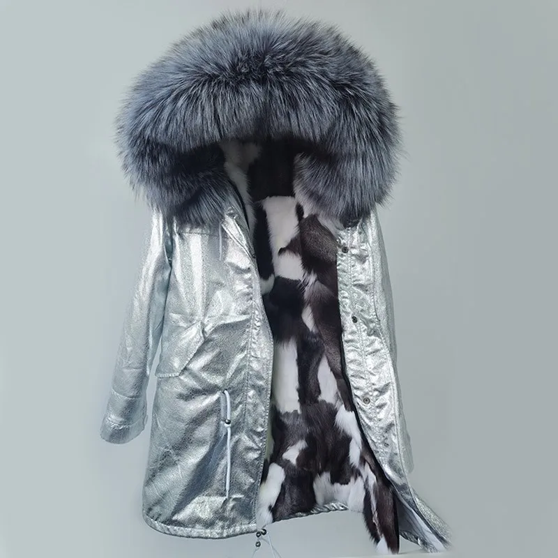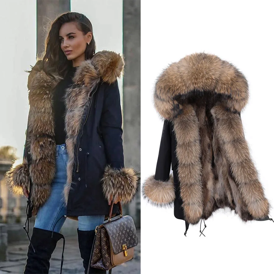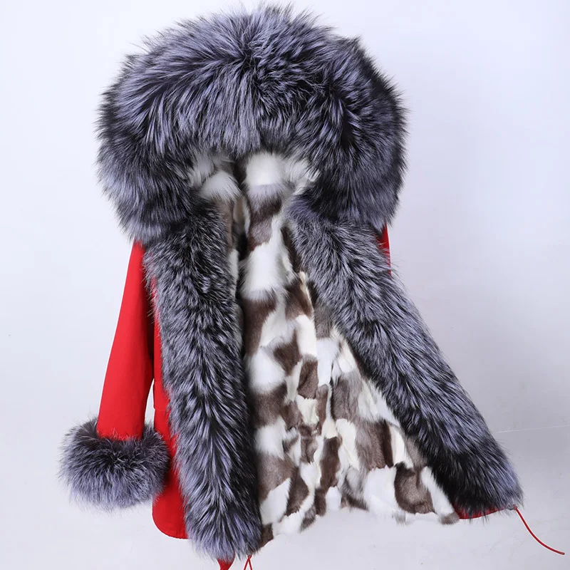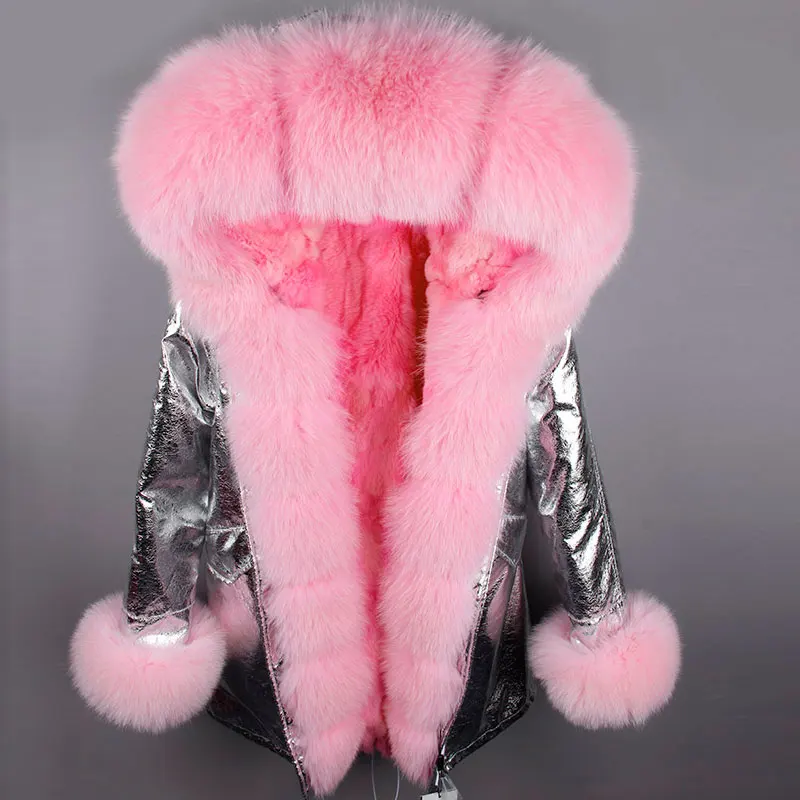 MAOMAOKONG-Veste d'hiver longue pour femme, Parkas optiques, Manteau à col en fourrure de renard véritable naturel, Vêtements à capuche roses, Vêtements pour femmes
