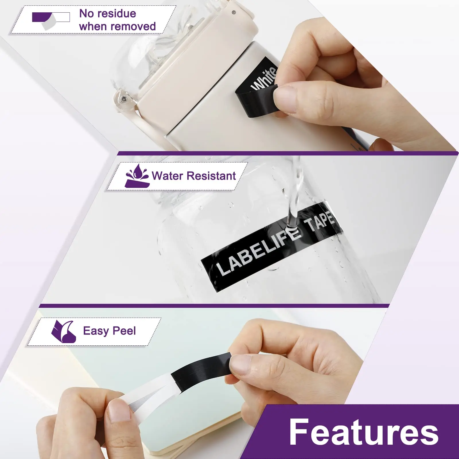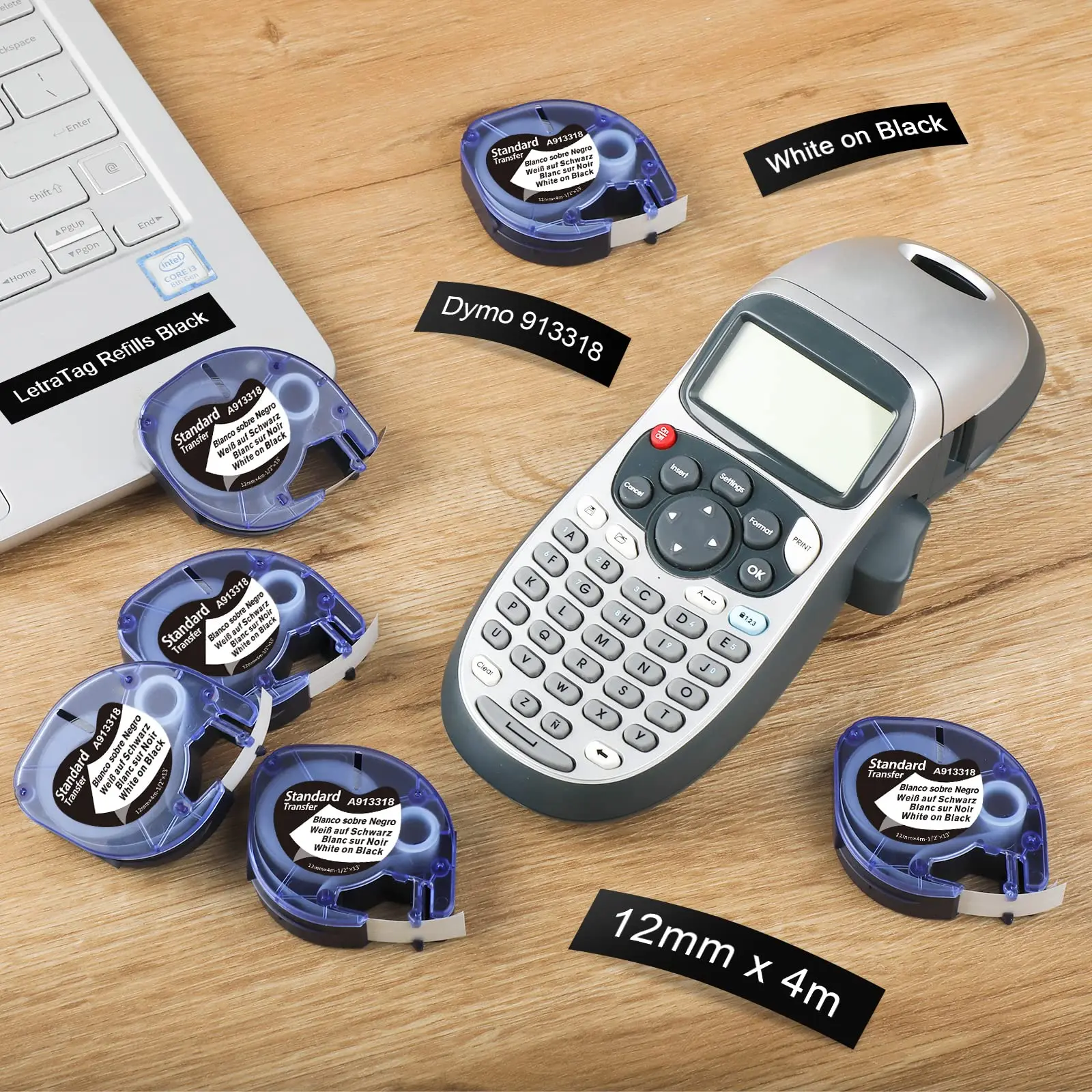 Parfaitement compatible avec l'étiquetage Dymo : Dymo LetraTag LT-100H / Plus, Dymo LetraTag LT-100T / Plus, Dymo LetraTag LT-110T, Dymo LetraTag XR, Dymo LetraTag XM, Dymo LetraTag 2000, Dymo LetraTag QX 50, Dymo LetraTag 200B etc.
