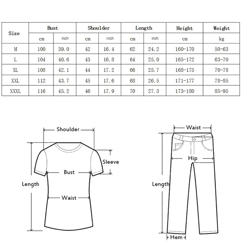 XXXL = buste 116 cm, longueur 70 cm, épaule 46 cm, pour poids 85-95 kg, hauteur 173-180 cm ;