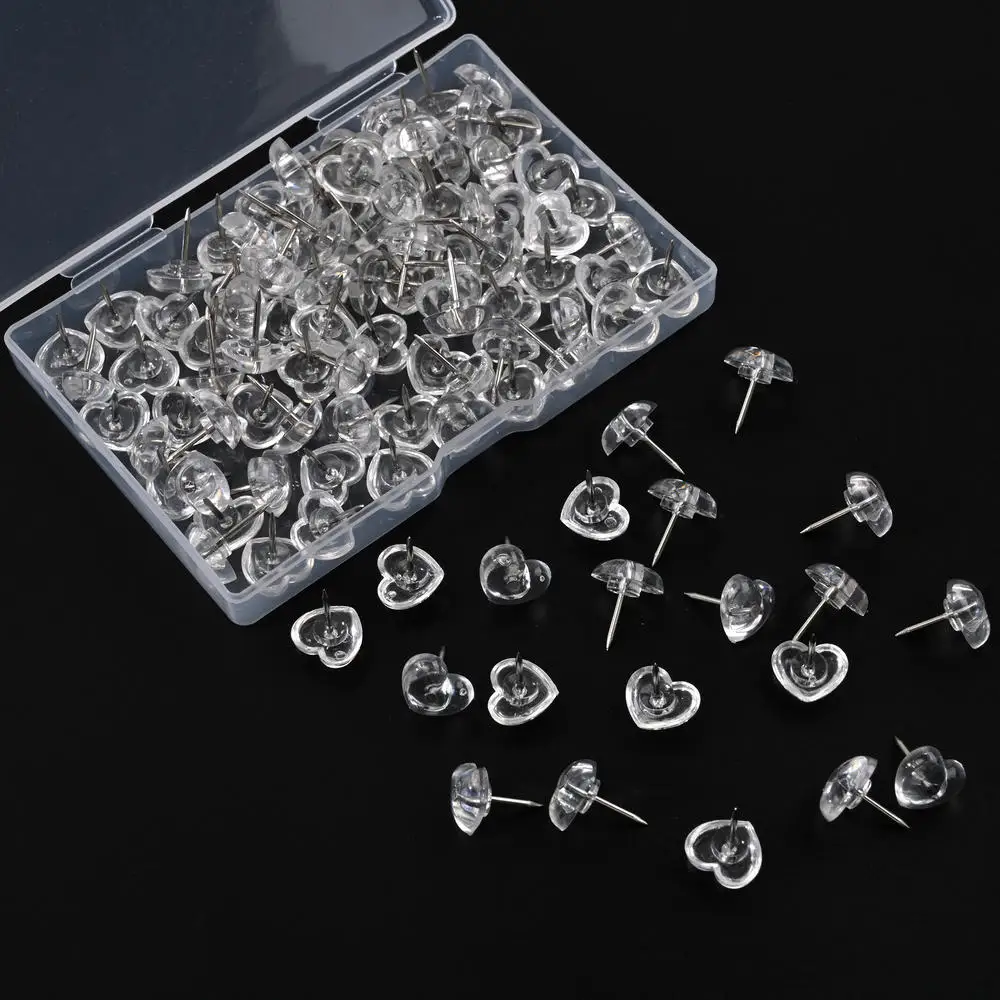 Marqueurs en forme de cœur pour dessin photo, goujons muraux, épingles pour tableau de liège, punaises transparentes, photo, pouce, cartes, 50 pièces, 100 pièces, boîte