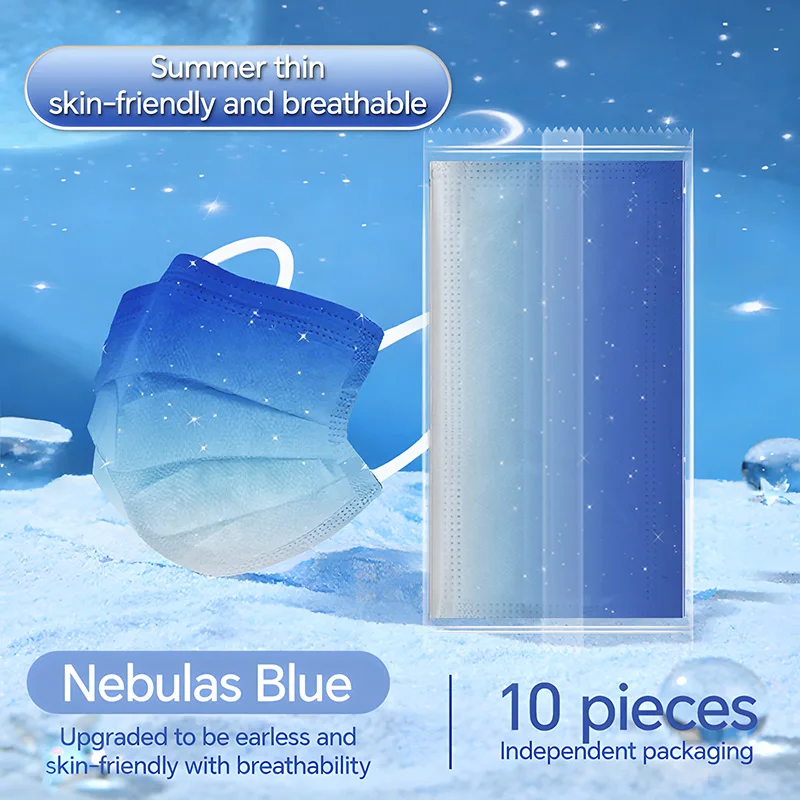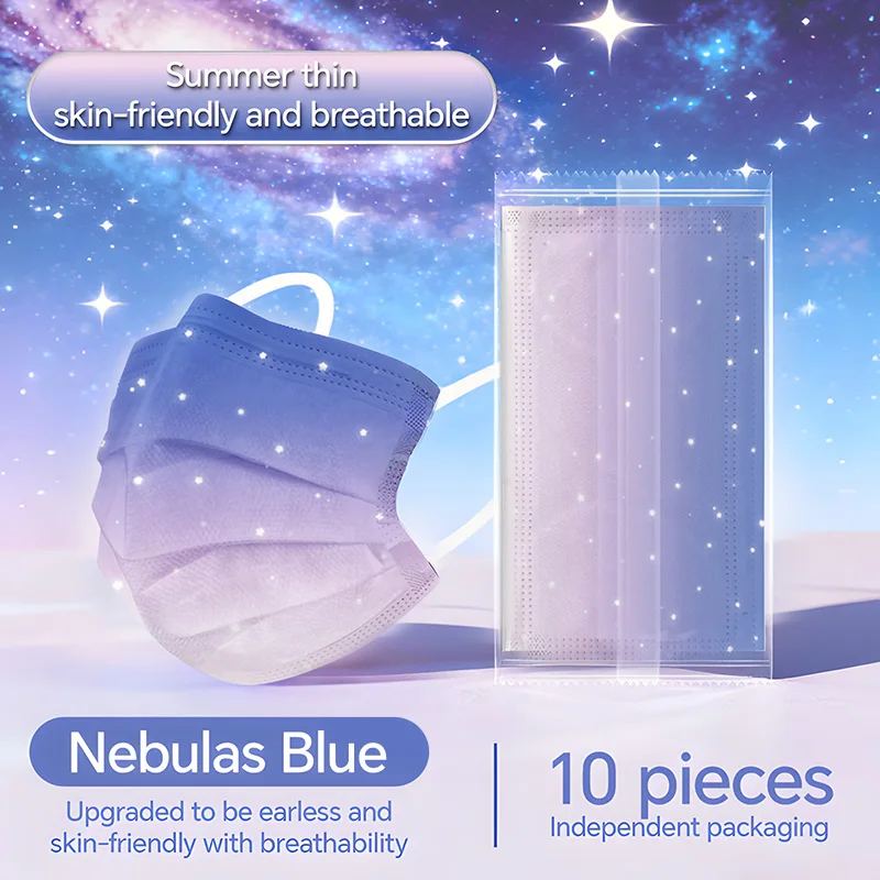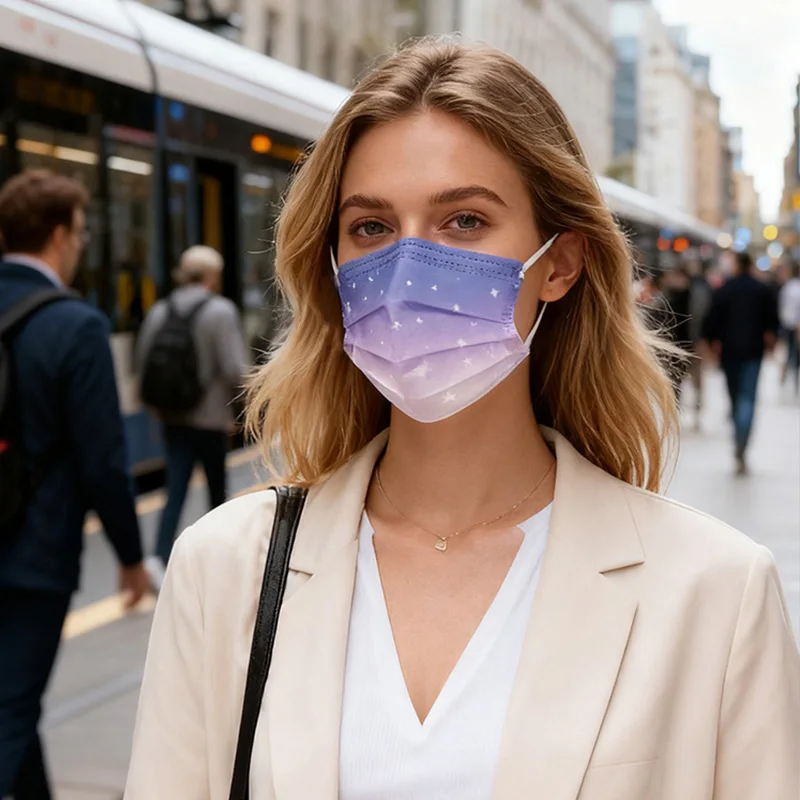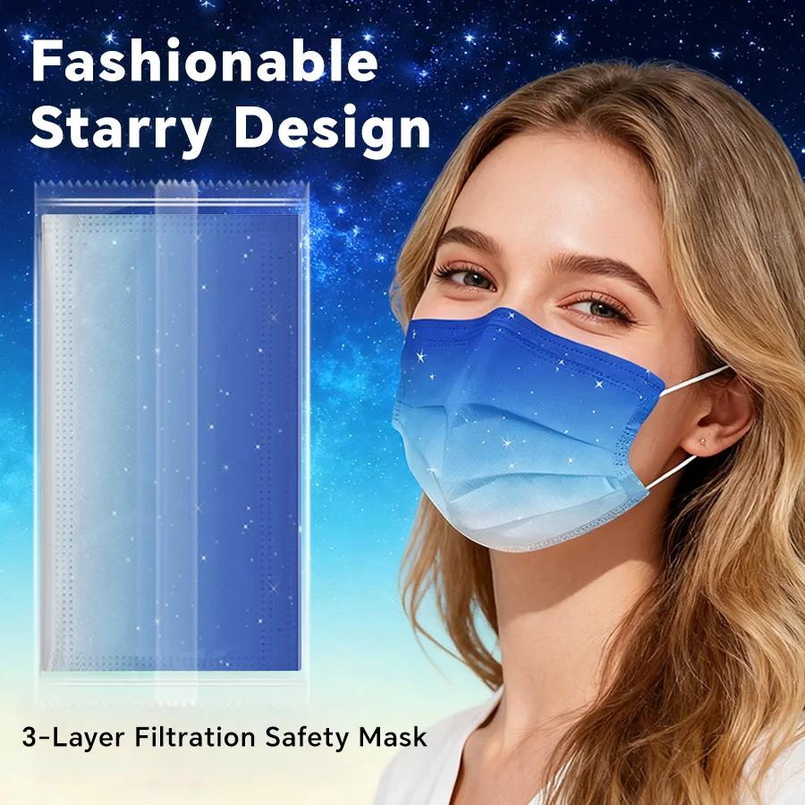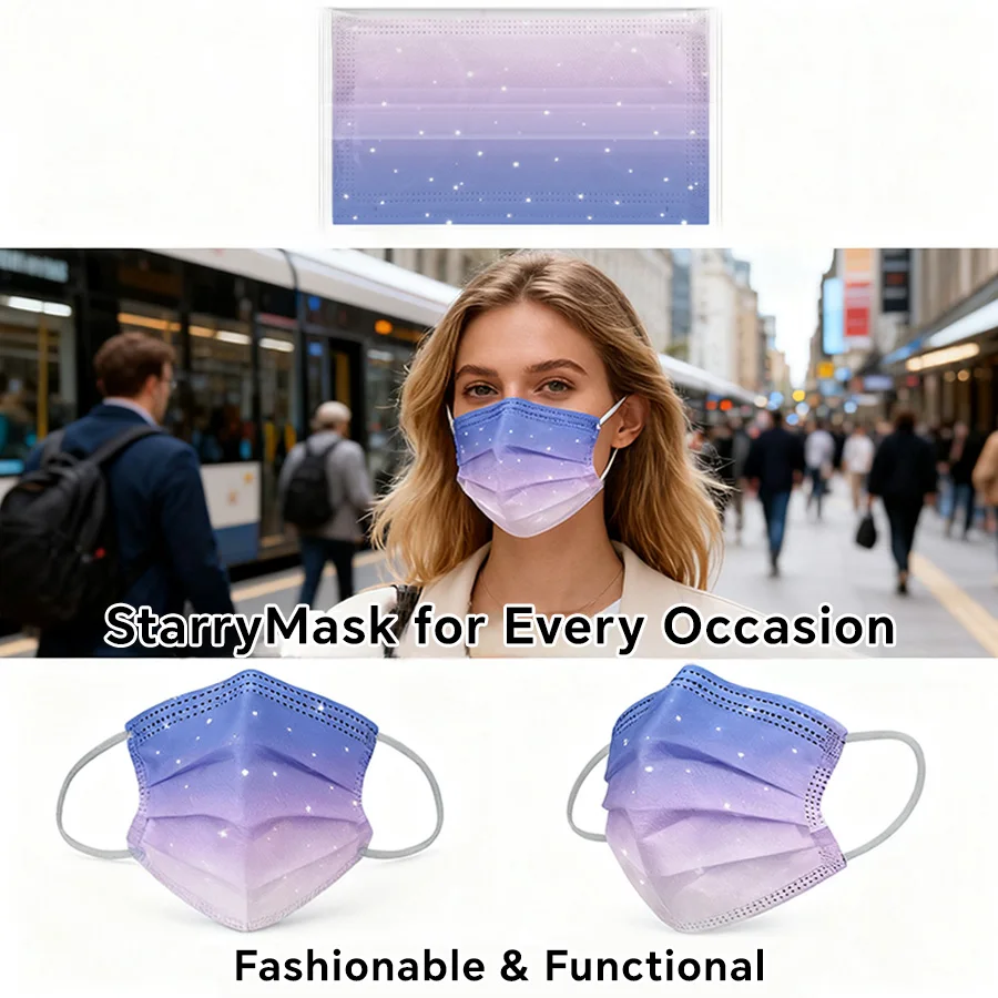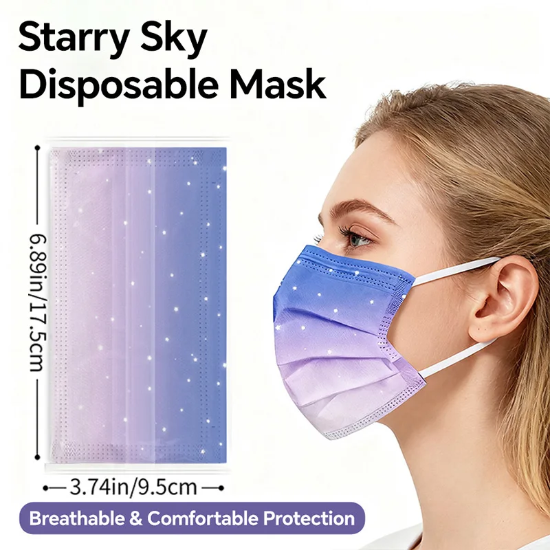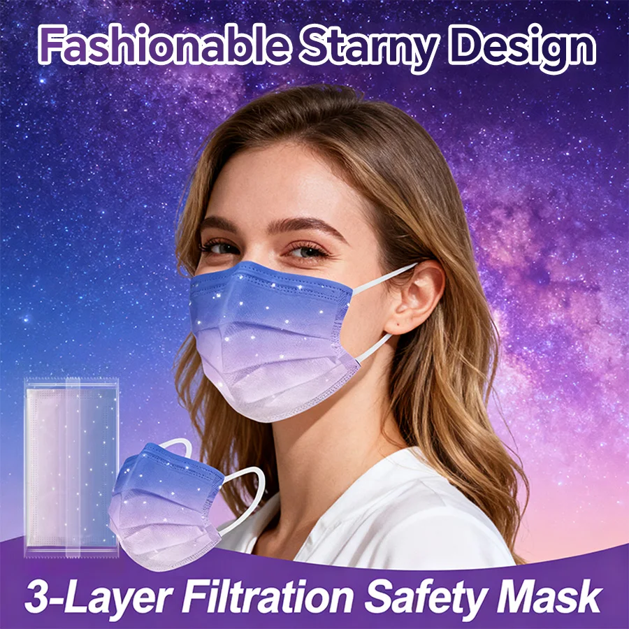 Masque facial jetable élégant pour adultes, masque de mode d'individuation violette bleuâtre étoilé de rêve, respirant, 3 couches, Non tissé, vacances