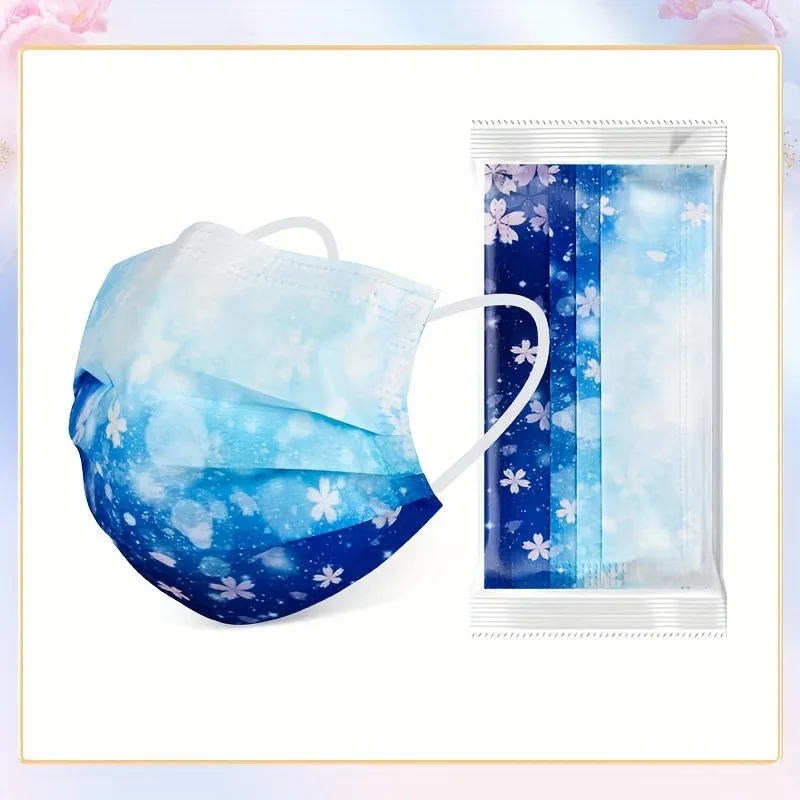 Masques faciaux romantiques à imprimé floral et ciel étoilé pour femmes, polypropylène tissé à 3 couches, élastiques, respirants et protection solaire, 10 pièces