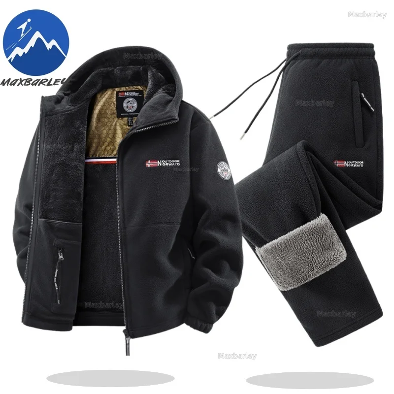 Maxbarley hiver ensemble de vêtements de sport hommes rétro formation épais polaire veste + pantalon deux pièces ensemble décontracté Ski course survêtement costume