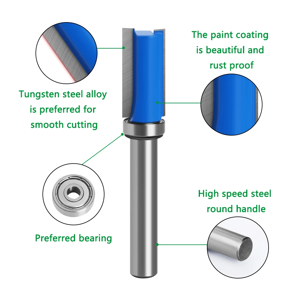 LAVIE1pc 8mm tige encastré garniture routeur pointe modèle Bit supérieur roulement inférieur 1/2" modèle de lame bois fraise charpentier MC02210S1213