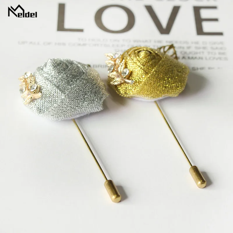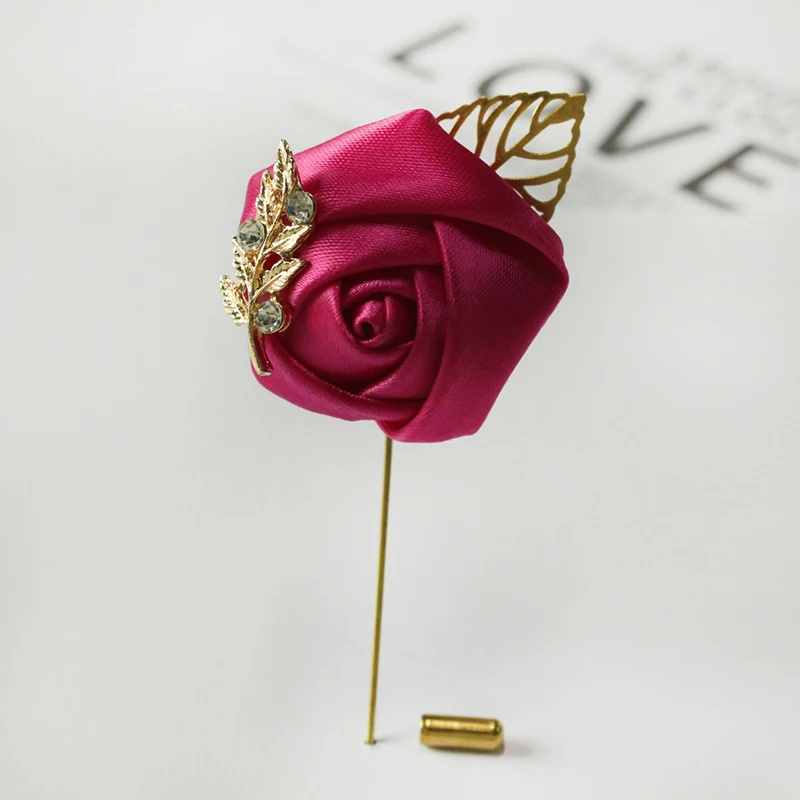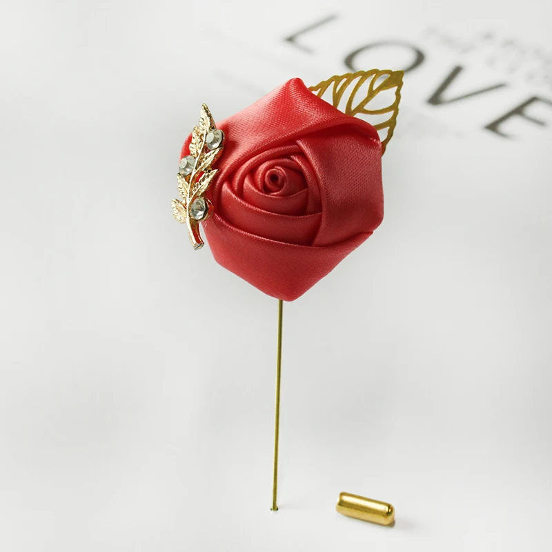 Meldel Groom Boutonniere Men Wedding Witness Brooch Silk Rose Boutonniere Man Corsage Pins Wedding Boutonniere Flower Prom Party
