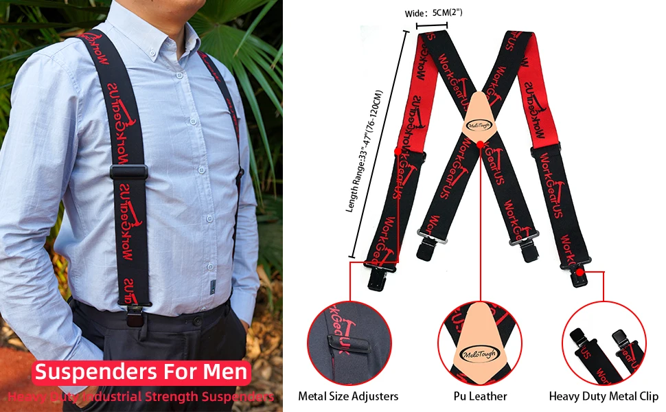 MeloTough – bretelles amusantes à motif de train de travail rouge, largeur de 2 pouces