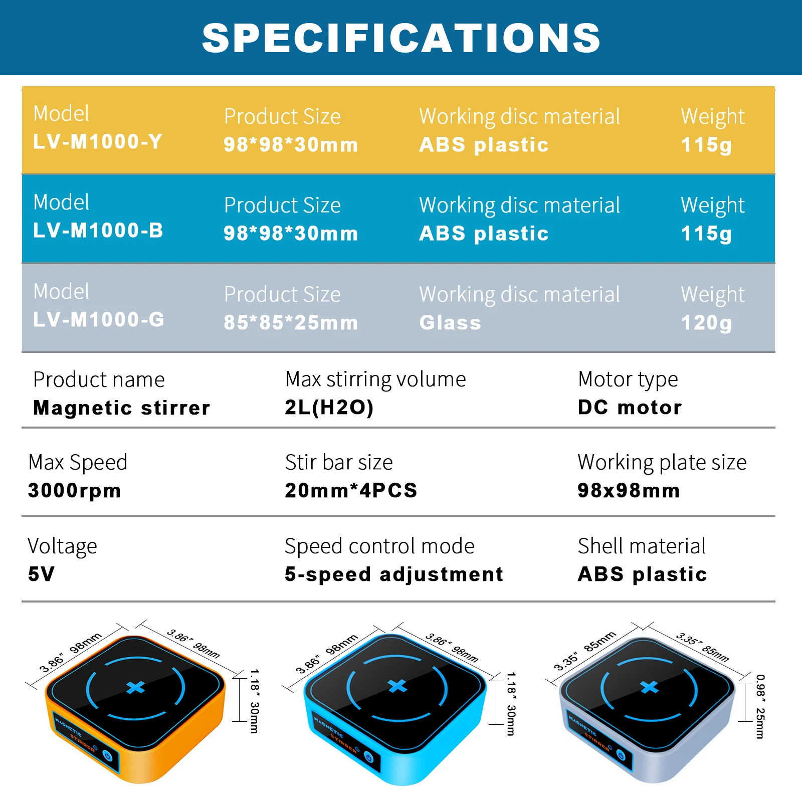 • 𝗪𝗮𝗺 𝘁𝗶𝗽• Veuillez utiliser un bécher ou un récipient avec une base fine, non magnétique, uniforme et plate pour de meilleures performances. (Le fond épais peut affecter la vitesse d'agitation.)