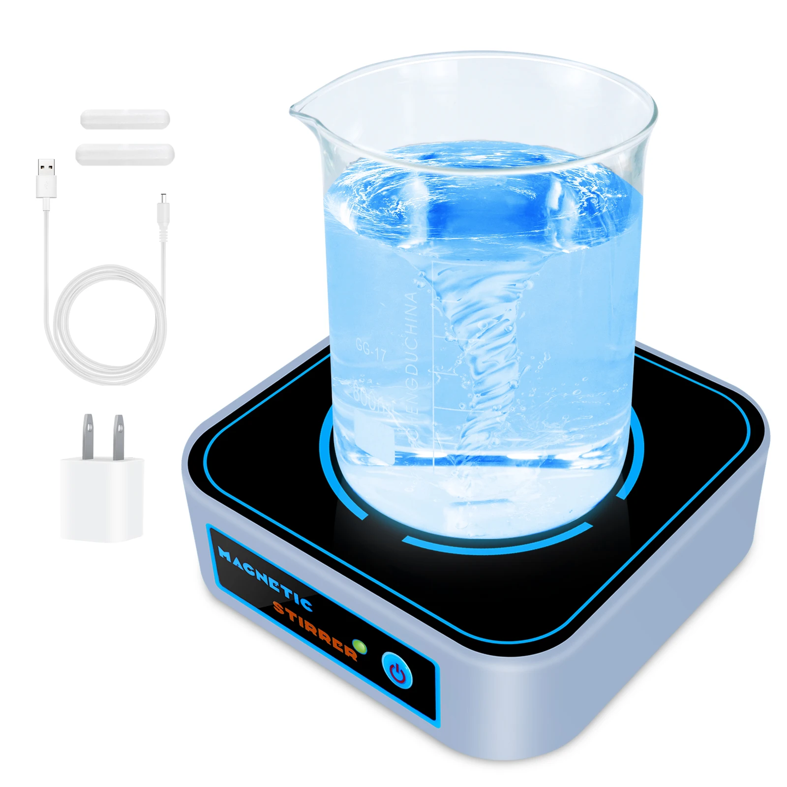 Agitateur magnétique, mini plaque d'agitation magnétique avec 2 barres d'agitation, 3000 tr/min agitateur magnétique mélangeur agitateurs de laboratoire, moteur à courant continu sans balais