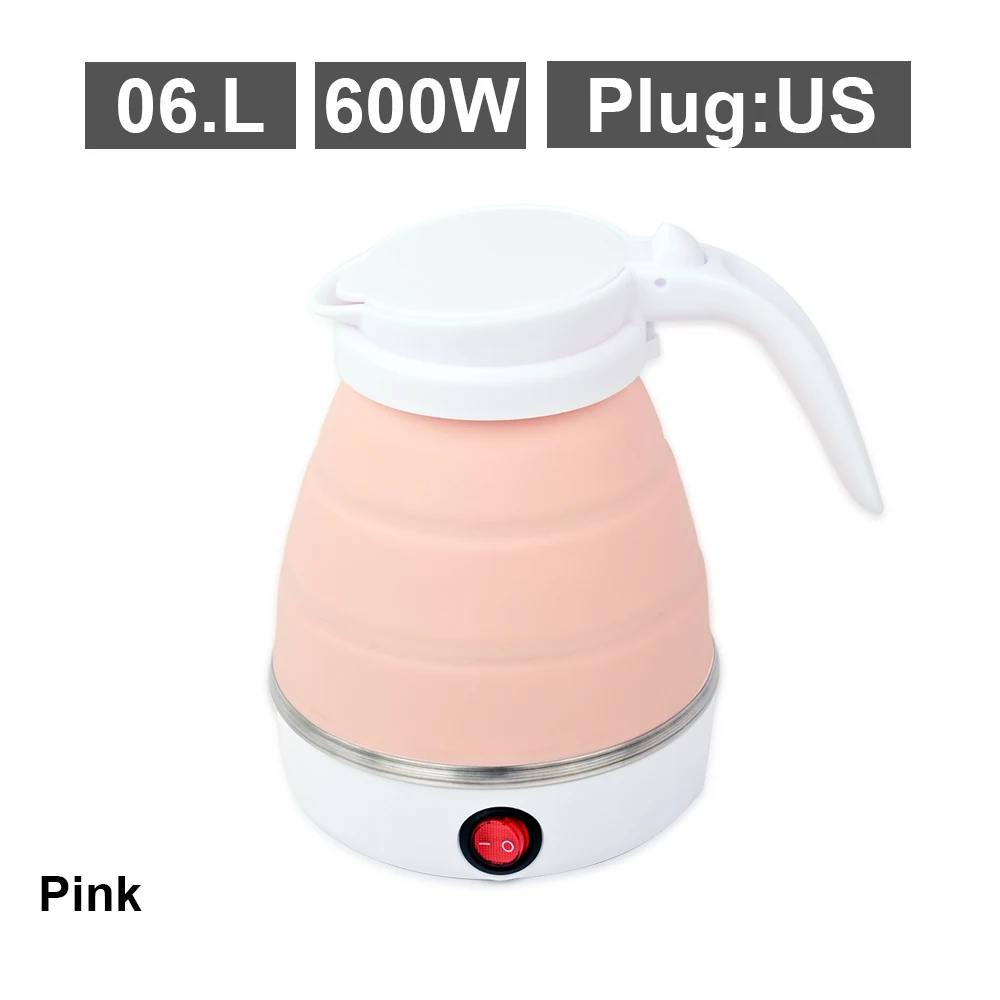 Mini bouilloire électrique pliable 0,6 l, bouilloire électrique portable, chauffe-eau domestique de voyage, compression en silicone, 110V-220V