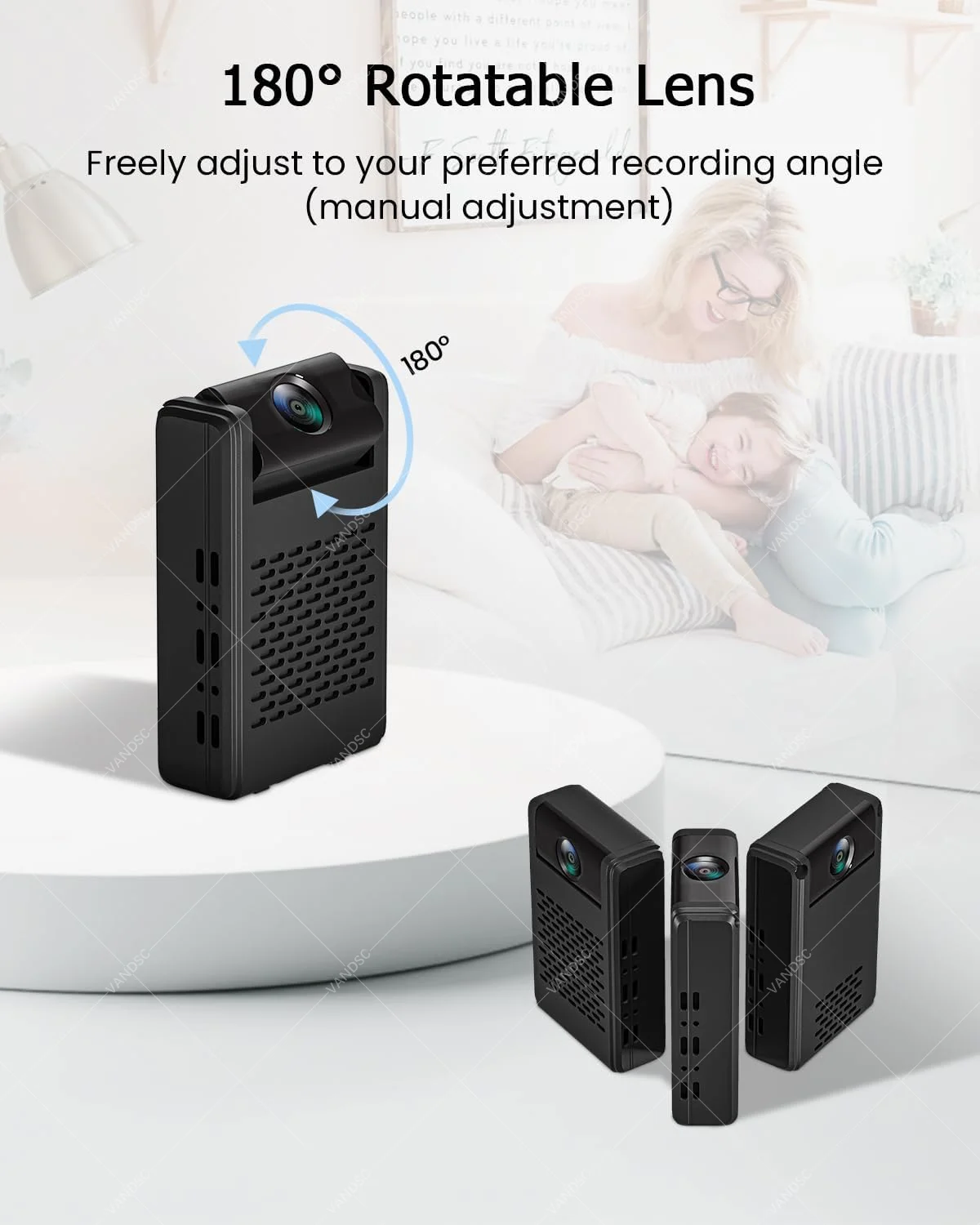 Rechargeable avec une durée de vie prolongée de la batterie : équipée d'une batterie de 1 500 mAh, cette plus petite caméra de surveillance offre environ 4 heures d'utilisation continue.Il peut également être utilisé pendant le chargement, se connectant aux banques d'alimentation pour un fonctionnement fluide.