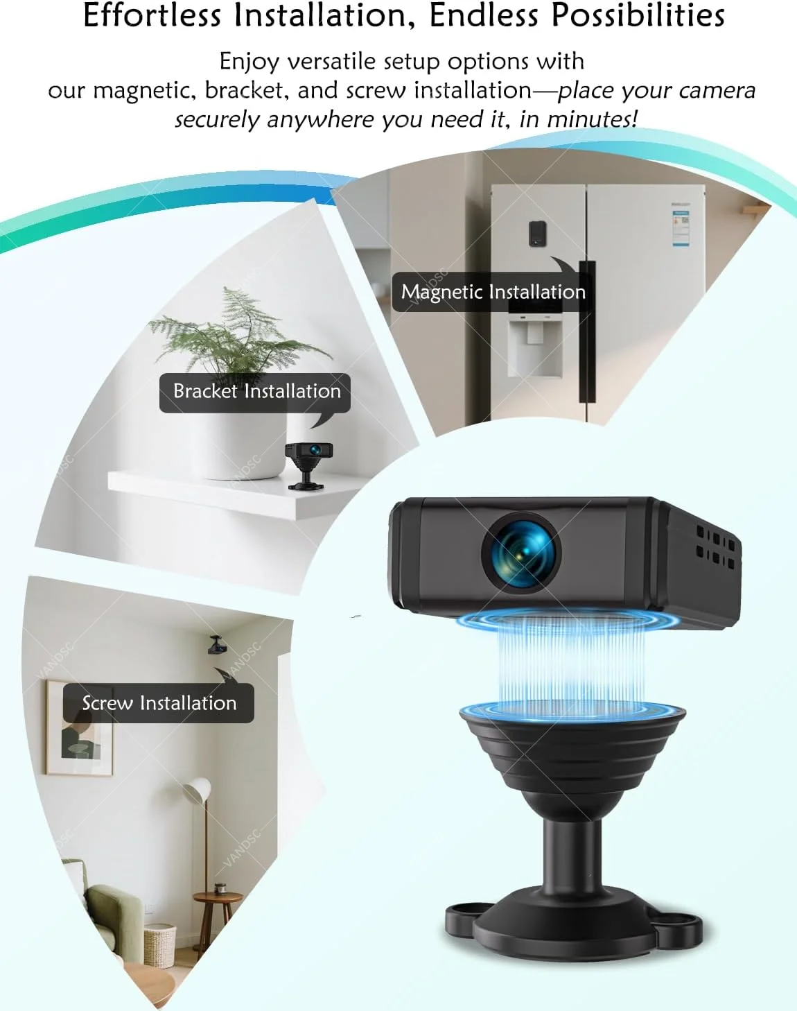 Design compact et fin : cette mini caméra ultra-compacte est très portable et facile à dissimuler, avec une option pour éteindre le voyant lumineux.Avec notre application gratuite, vous pouvez surveiller à distance depuis n'importe o, ce qui la rend parfaite pour la sécurité de la maison, du bureau ou des voyages.