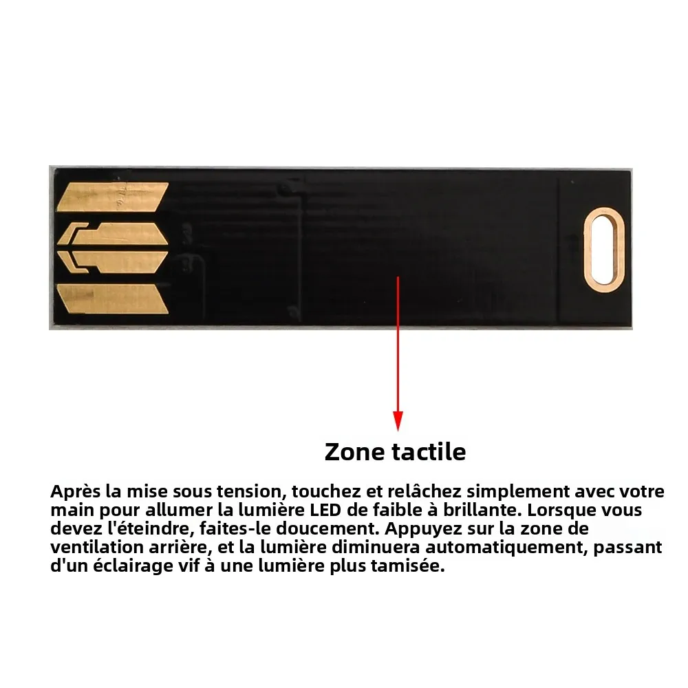 La zone noire à l'arrière de la petite lumière appartient à la zone tactile.Une fois l'appareil allumé, touchez-le et relâchez-le simplement avec votre main, et le feu LED T s'allumera de l'obscurité à la lumière.Il s'éteindra automatiquement du clair au foncé.