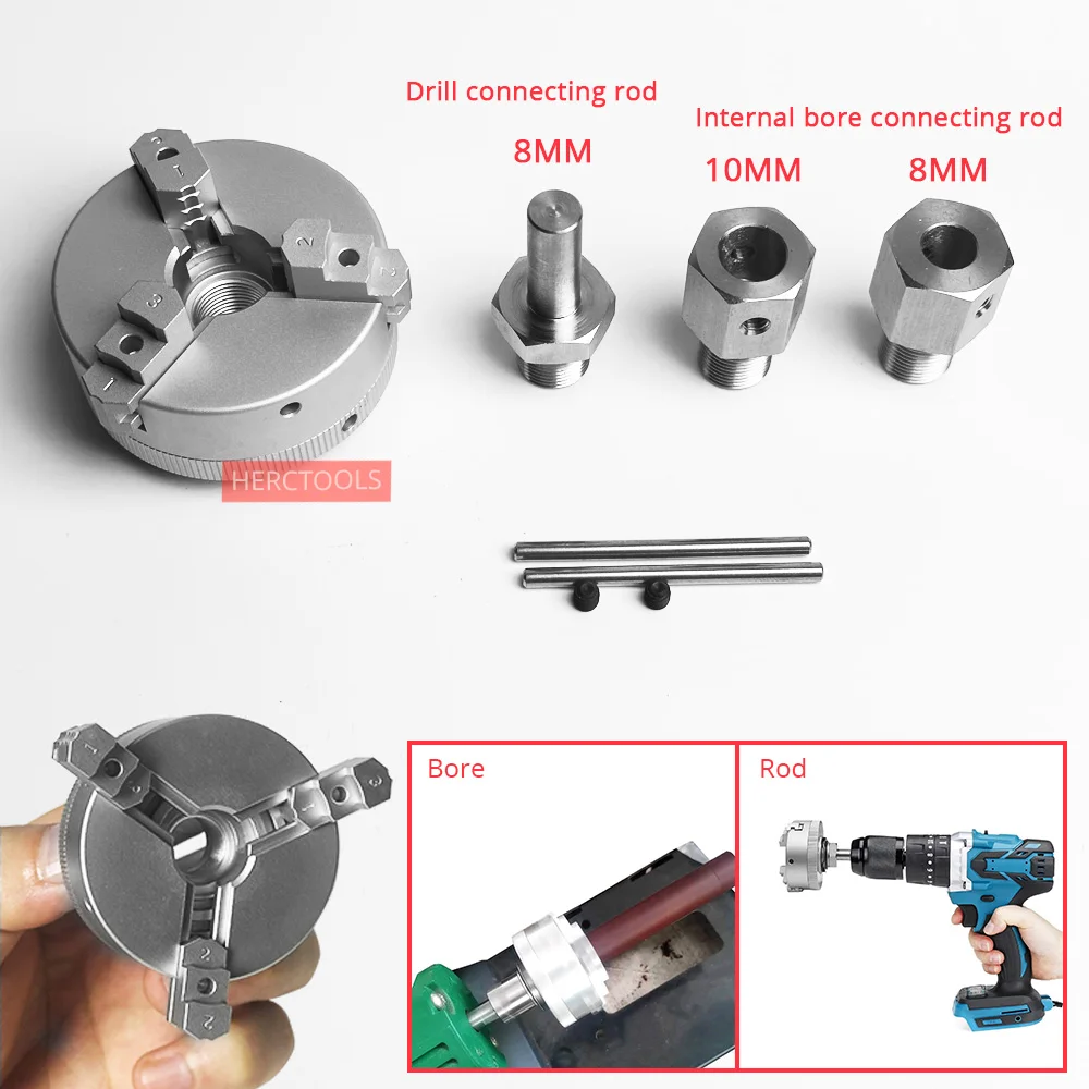 Mini mandrin à trois mâchoires de 50mm pour meuleuse d'établi de tour, perceuse électrique en alliage d'aluminium, mandrin de tournage à centrage automatique pour le travail du bois