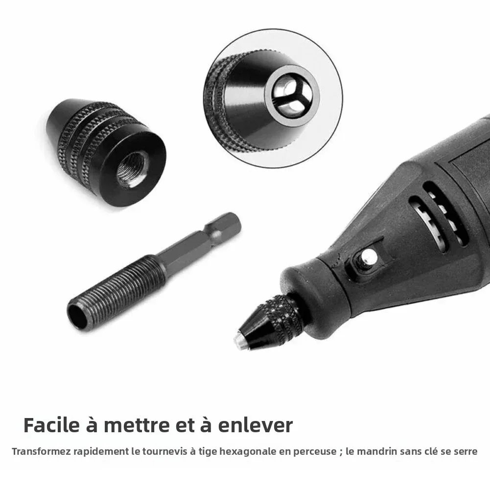 Mini perceuse mandrin sans clé 0.3-8mm, foret électrique à serrage automatique, outil de pince, pilotes à tige hexagonale de 1/4 pouces, convertisseur à changement rapide