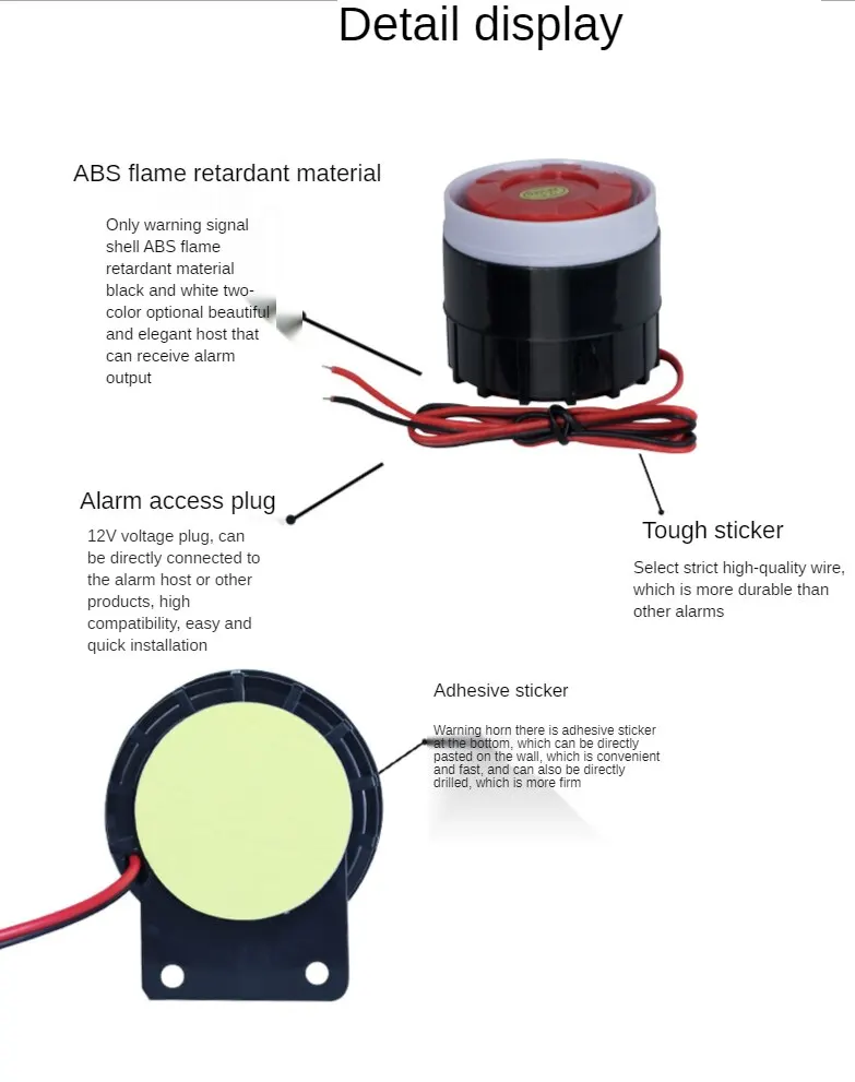 ONENUO DC12V Filaire Mini Corne Sirène de Sécurité À Domicile Système D'alarme Sonore 105dB Anti-vol D'alarme Corne Filaire Durable Alarme Pour La Sécurité À Domicile