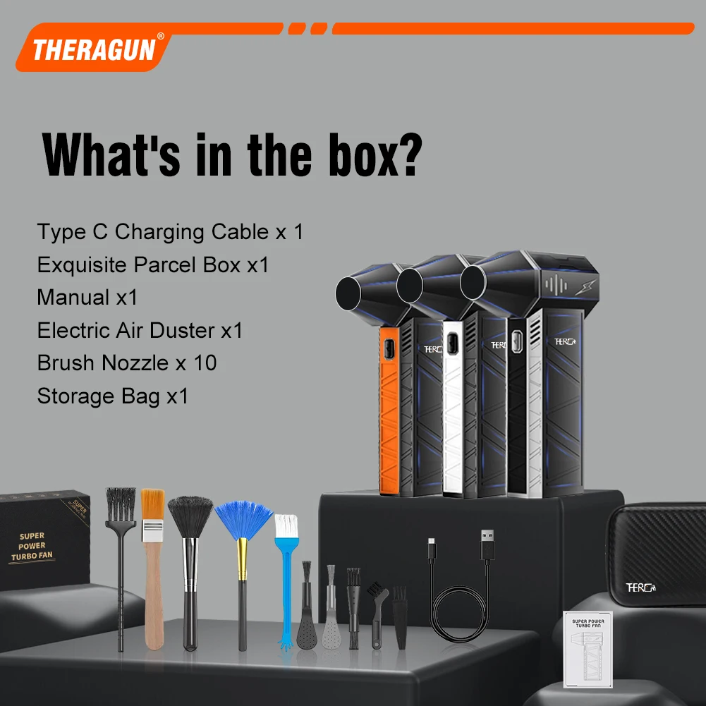 Le dépoussiéreur à air comprimé comprend un câble USB Type-C, un manuel d'utilisation, un sac de rangement cadeau et une brosse de nettoyage.Un adaptateur secteur 5V2A est recommandé.NOTE IMPORTANTE : Pour une utilisation en toute sécurité, veuillez éviter la surcharge et ne pas placer à proximité de sources de chaleur ou de matériaux inflammables.