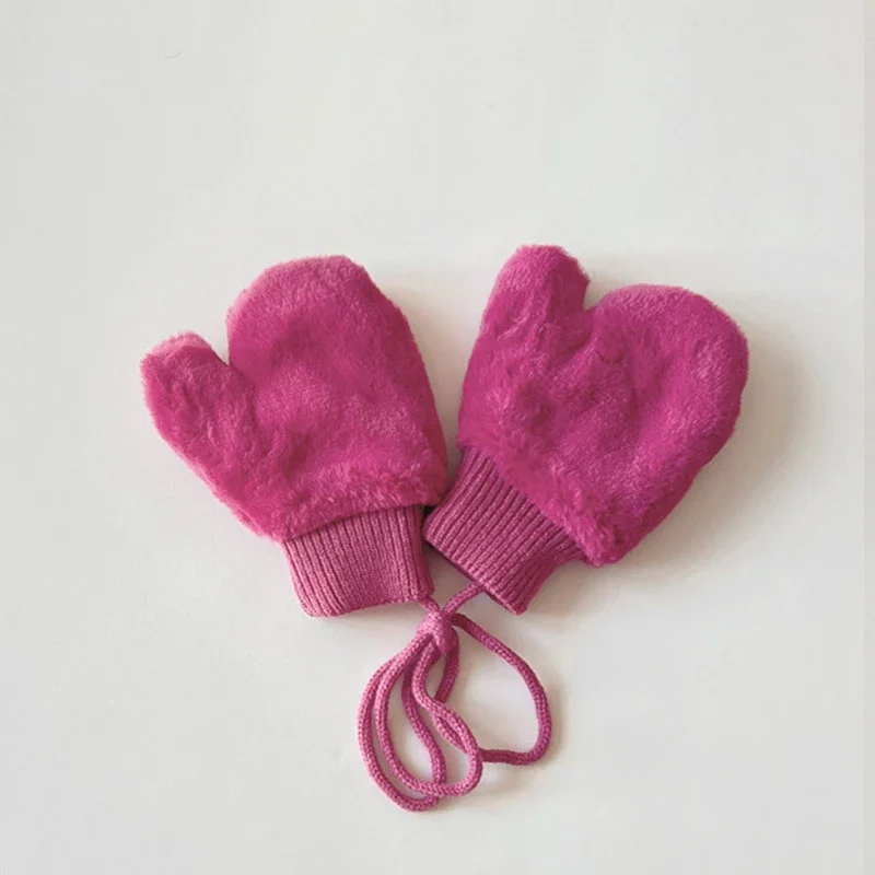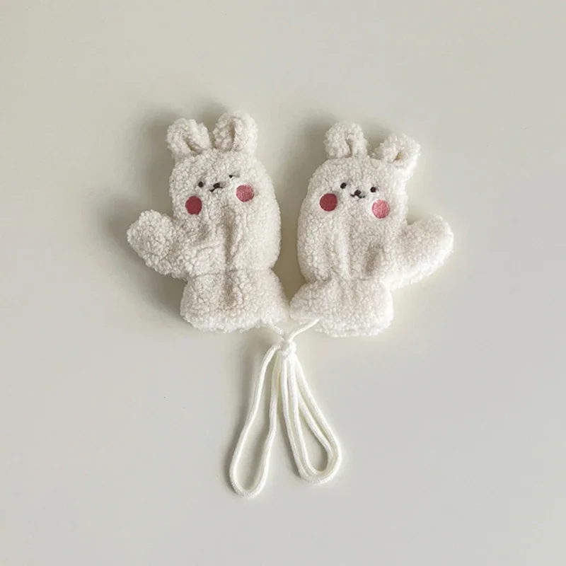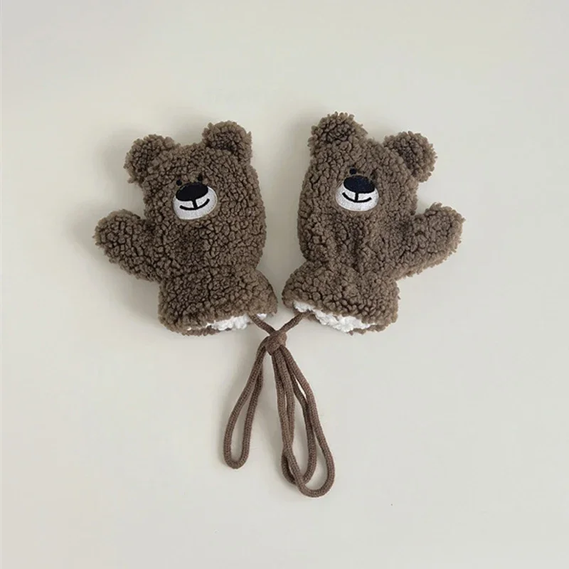 1-4Y bébé dessin animé ours étiquette mitaines hiver chaud enfants filles gants fourrure douce enfants enfant en bas âge épais enfant polaire dessin animé mitaines