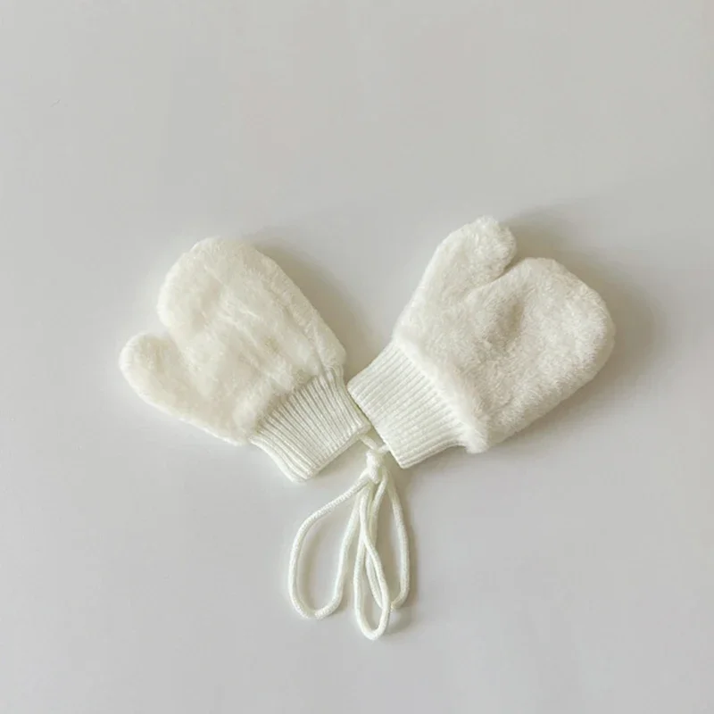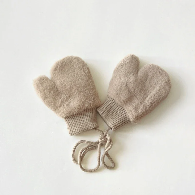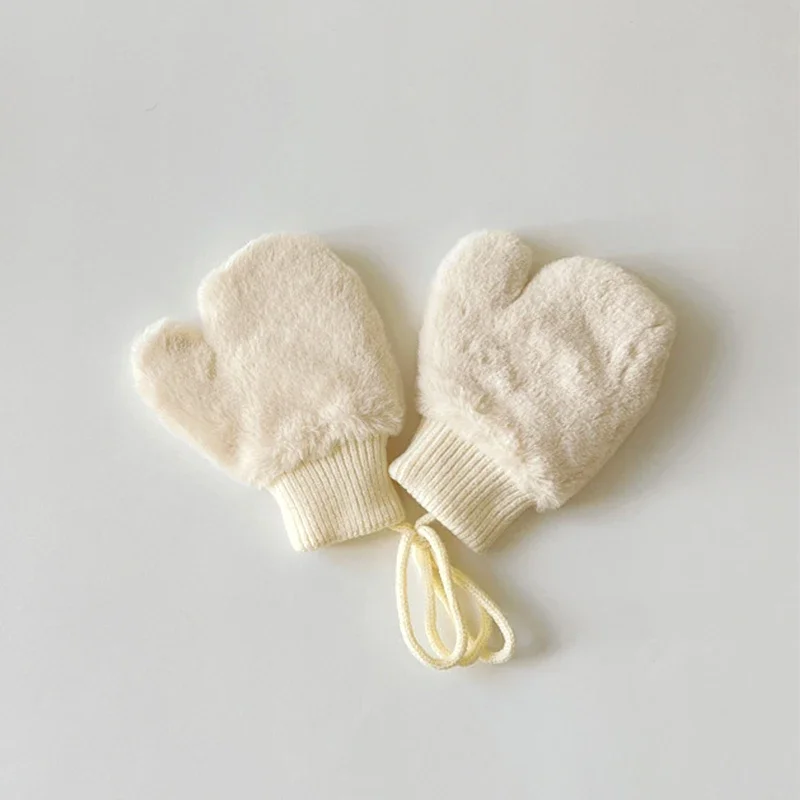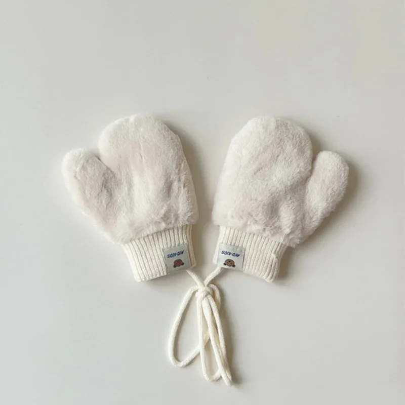 Mitaines d'hiver chaudes avec étiquette d'ours de dessin animé pour bébé de 1 à 4 ans, gants en fourrure douce pour enfants en bas âge, mitaines épaisses en polaire de dessin animé