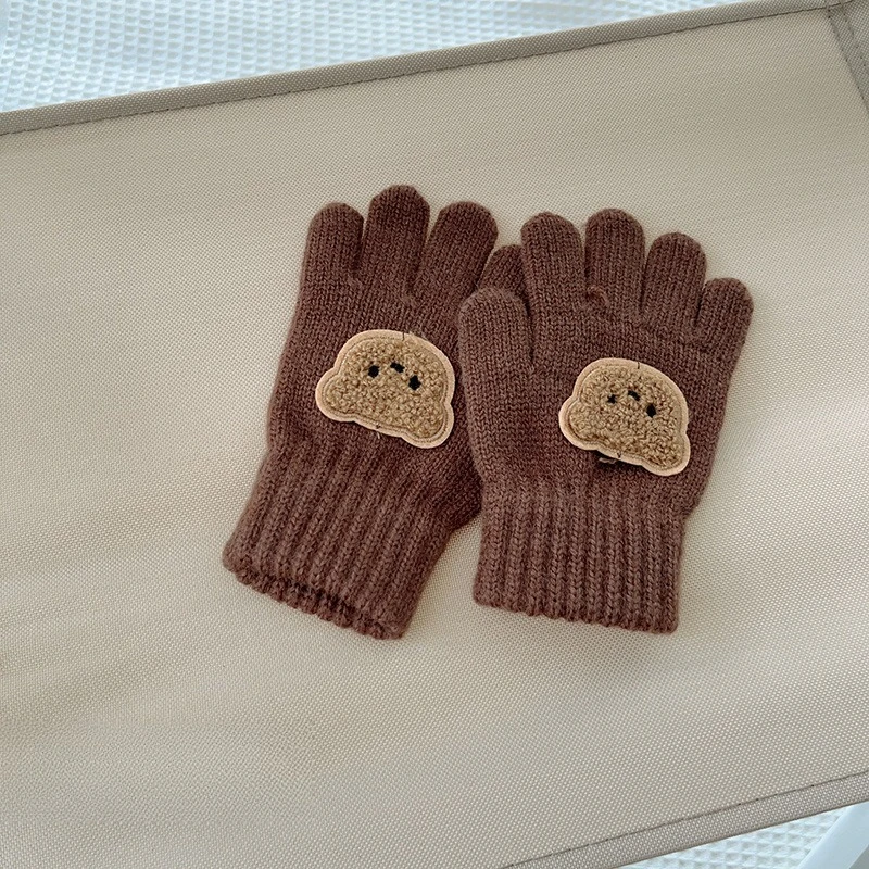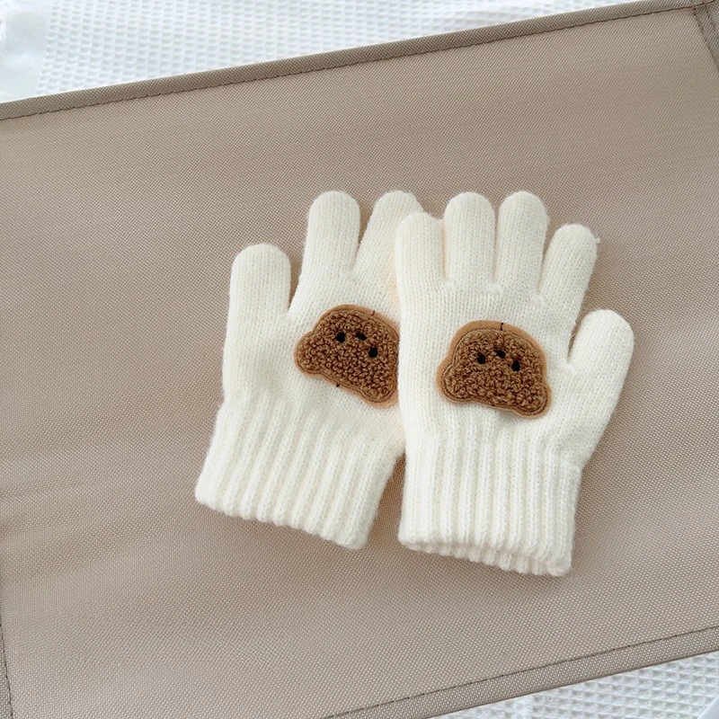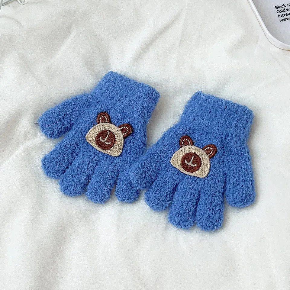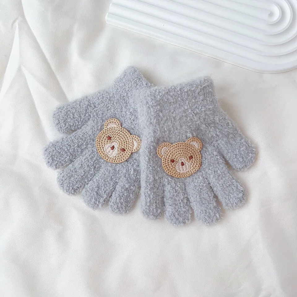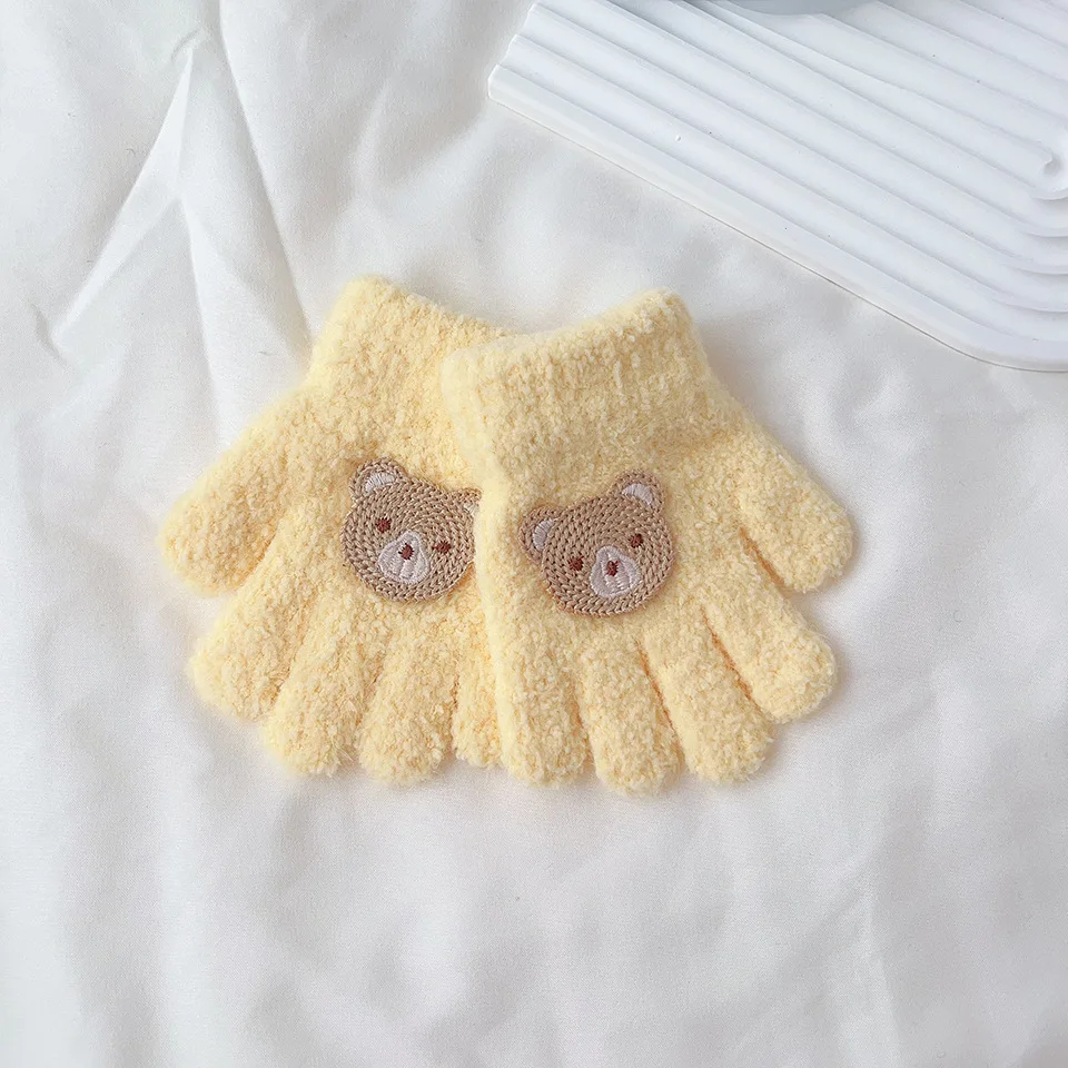 Mitaines d'ours de dessin animé pour bébé de 3 à 7 ans, chaudes d'hiver pour enfants filles, gants de poupée solides tricotés pour enfants en bas âge, mitaines de dentition épaisses