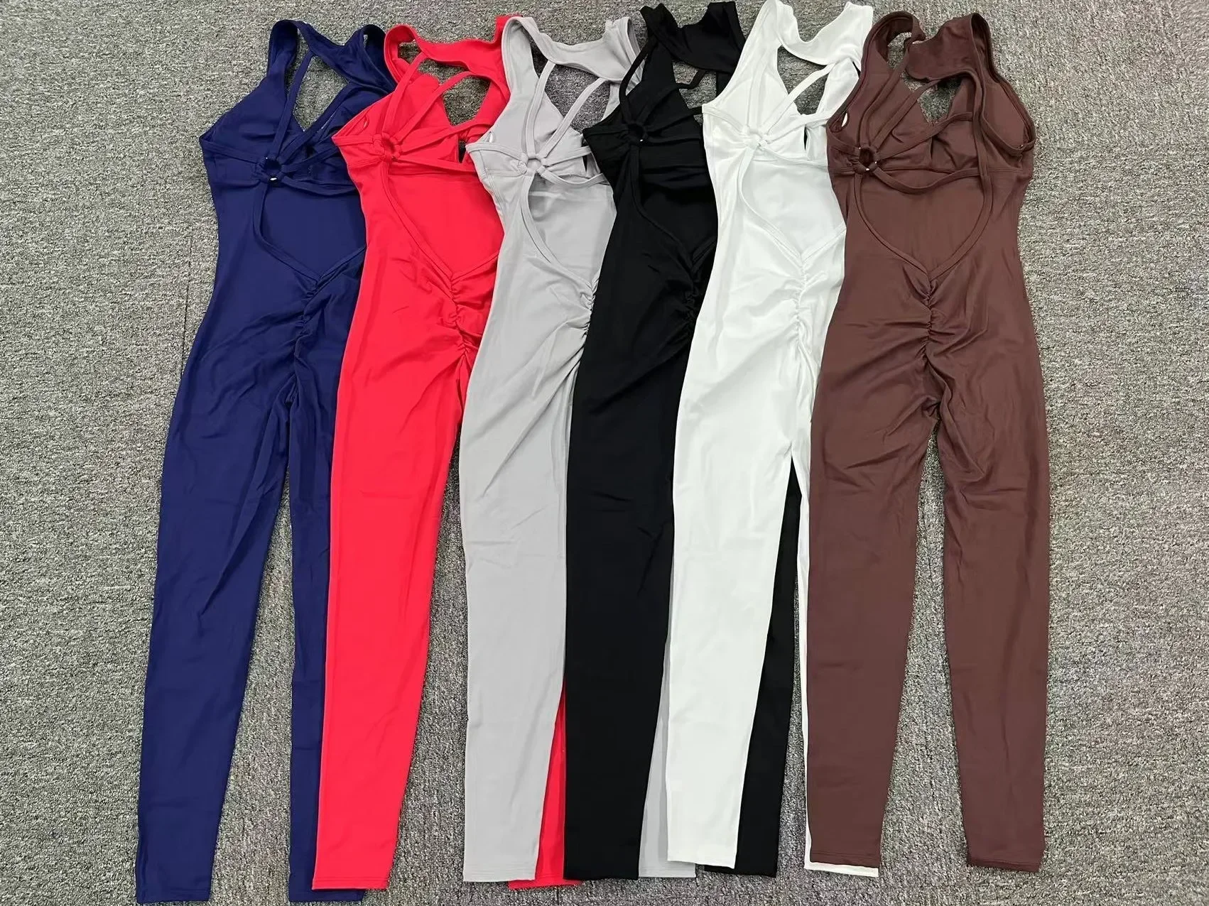 Mode Sexy creux Scrunch singes femmes Gym Sport combinaison soulève les fesses blanc noir femme Yoga Fitness salopette tenues d'été