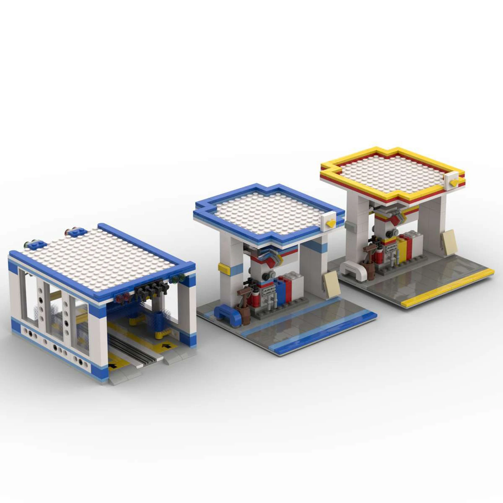 Modèle de station-service MOC, blocs de construction, lavage de voitures automatique, assemblage éducatif, petites briques MOC, jouets DIY pour garçons, cadeaux