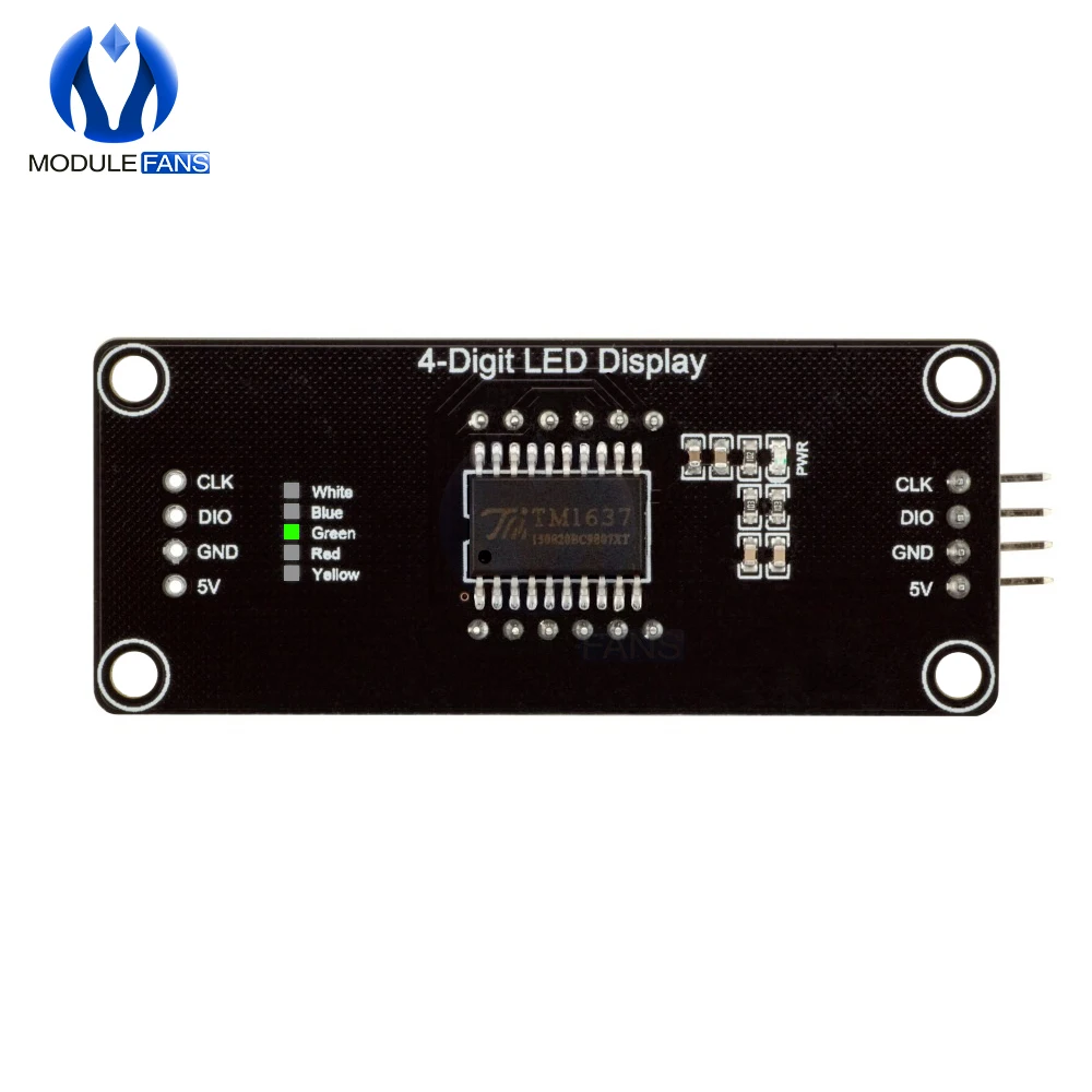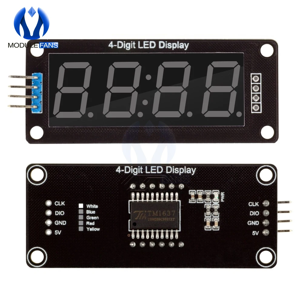 Module d'affichage LED TM1637 pour Arduino Module d'affichage horaire à 4 chiffres et 7 segments de 0,56 pouce Rouge Bleu Vert Jaune Blanc Spécifications : Il s'agit d'un module d'affichage de base à 4 chiffres et 7 segments. L'affichage comporte des décimales par chiffre.