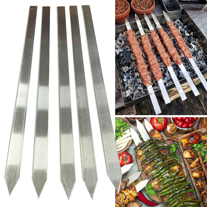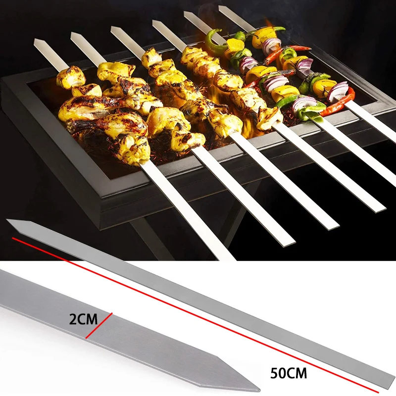 Modules Kebob en acier inoxydable pour barbecue, modules Wers, sans bois, manche plat, Wer Nucleofor Brazilian Koobideh Persian, 50cm de large, 6 pièces