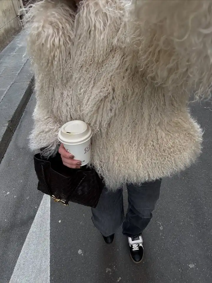 Veste en vraie fourrure de mouton de Mongolie pour femmes, veste en fourrure de mouton marron foncé