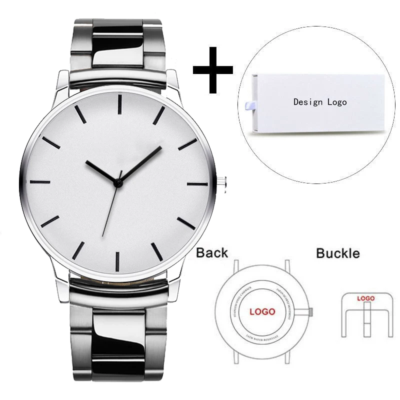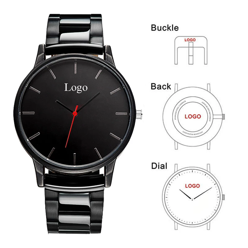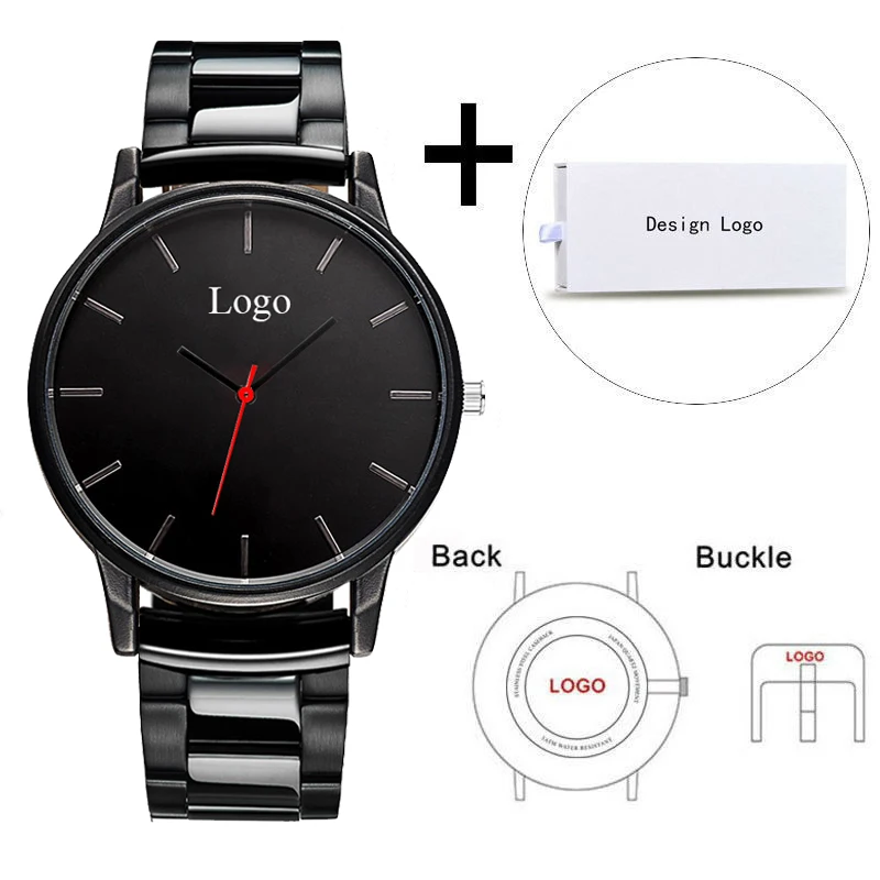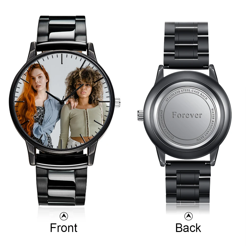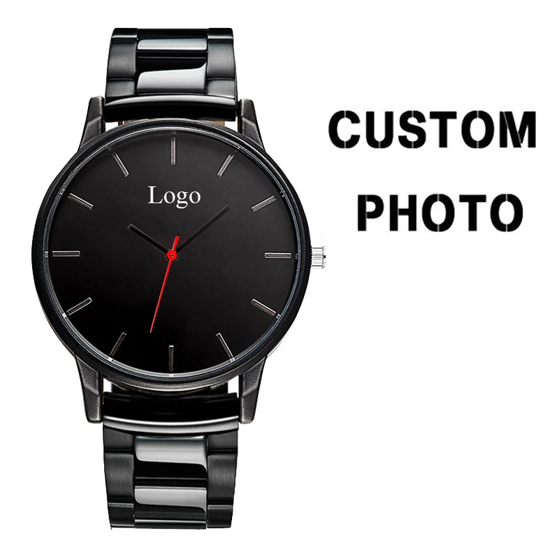 Montre-bracelet classique pour hommes, marque personnelle, ton noir, en acier inoxydable, personnalisée, Photo de famille, cadeau