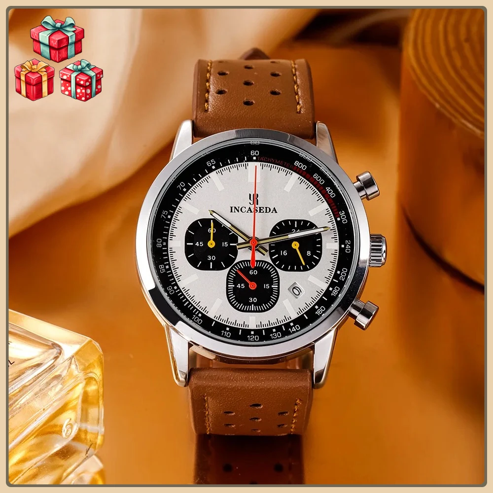Montre de Couple lumineuse, chronographe, Quartz, cuir, sport multifonctionnel, étanche, avec affichage de la Date