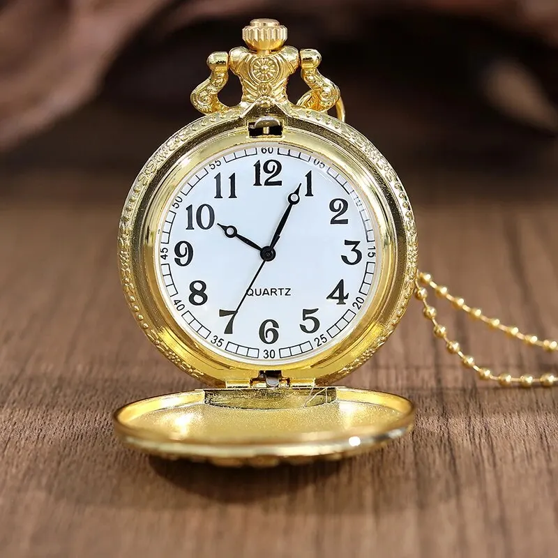 Montre de poche à Quartz de fleur d'or de luxe impression Double face Design de mode pendentif Fob montre chaîne cadeaux pour hommes