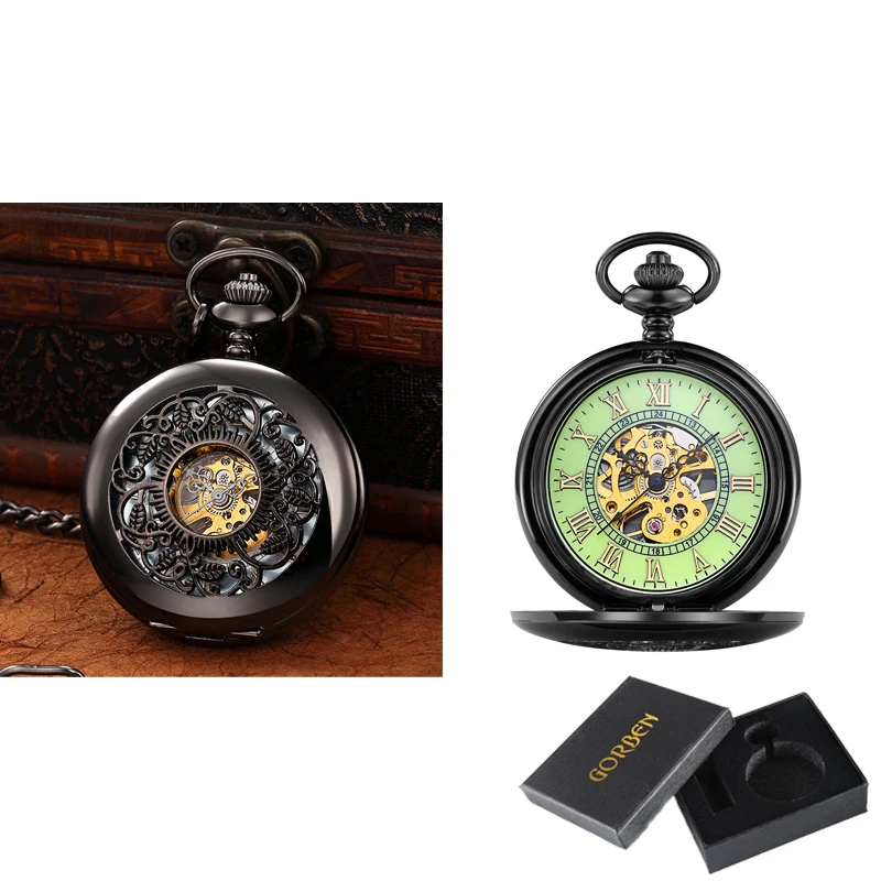 Montre de poche mécanique à vent lumineux veilleuse LED