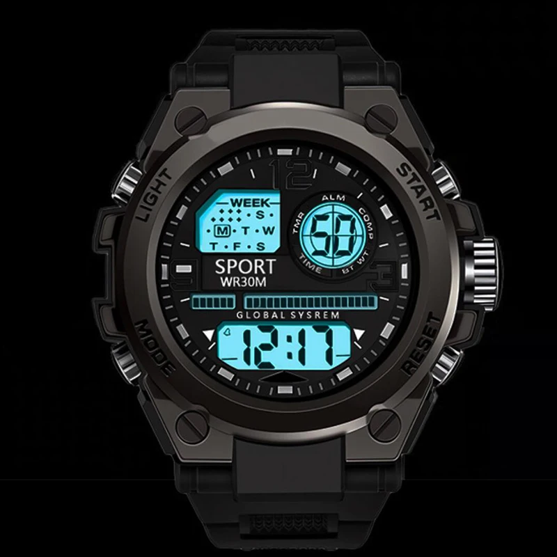 YIKAZE montres de sport pour hommes montre numérique multifonction militaire 3Bar étanche réveil lumineux hommes montre-bracelet électronique