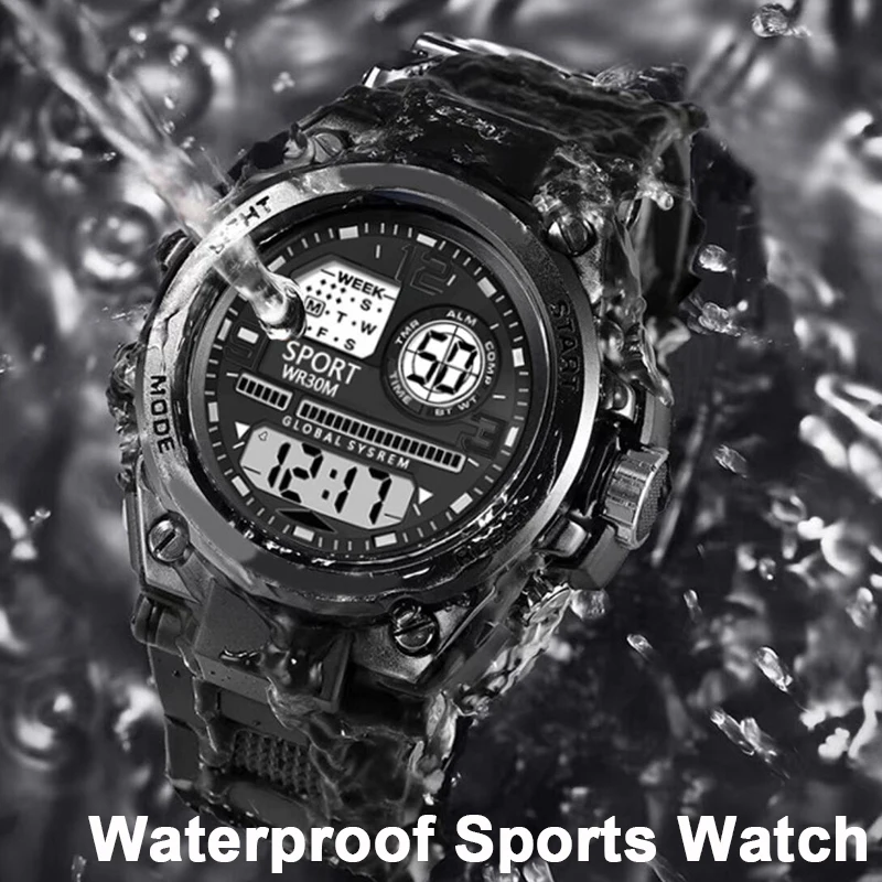 --Montre de sport pour hommes : convient aux hommes, en particulier à ceux qui aiment faire du sport, résistante aux chocs, chronomètre, mode heure 12/24 heures et LED.